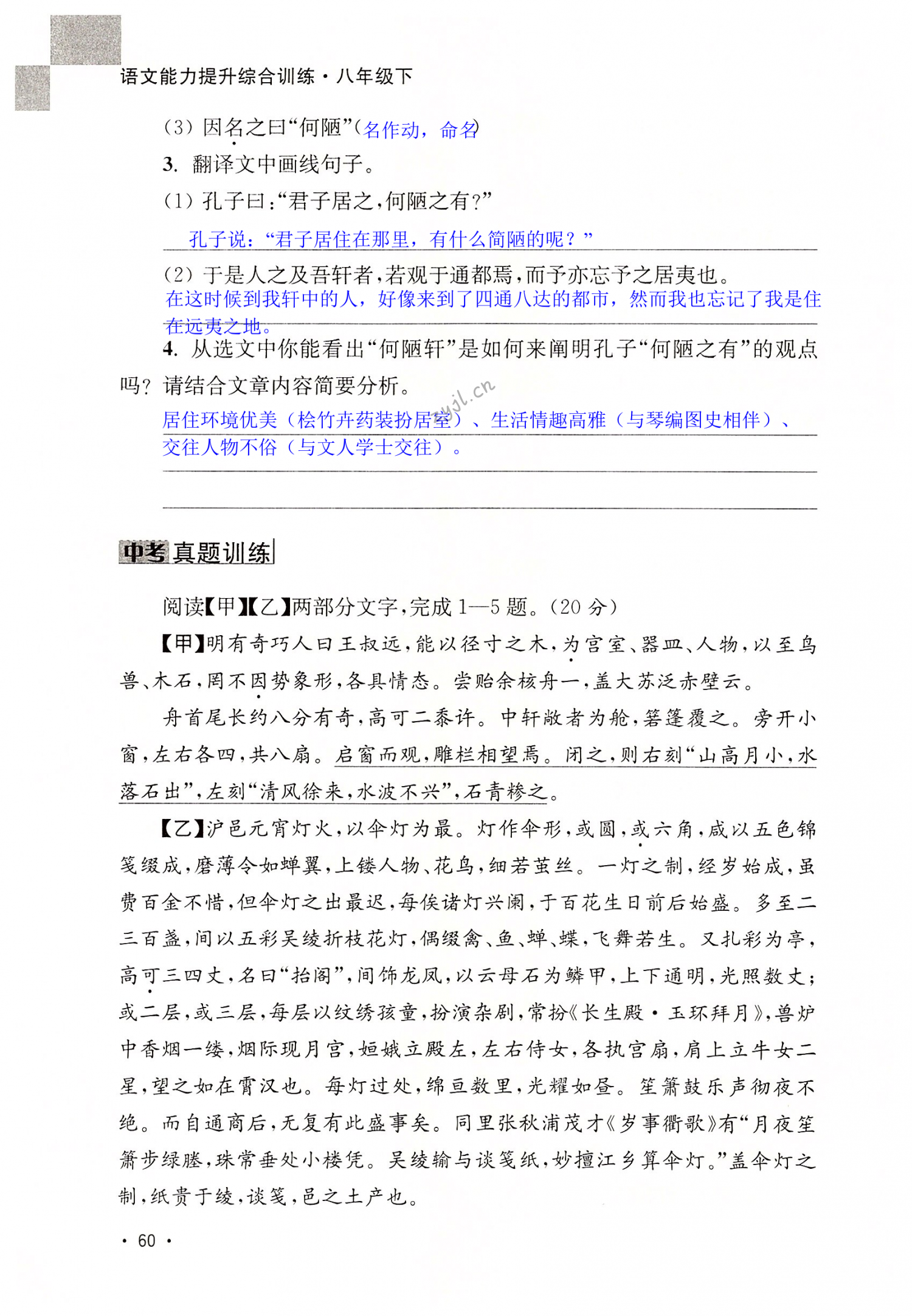 注:目前有些书本章节名称可能整理的还不是很完善,但都是按照顺序排列的,请同学们按照顺序仔细查找。练习册 2023年语文能力提升综合训练八年级语文下册 答案主要是用来给同学们做完题方便对答案用的,请勿直接抄袭。