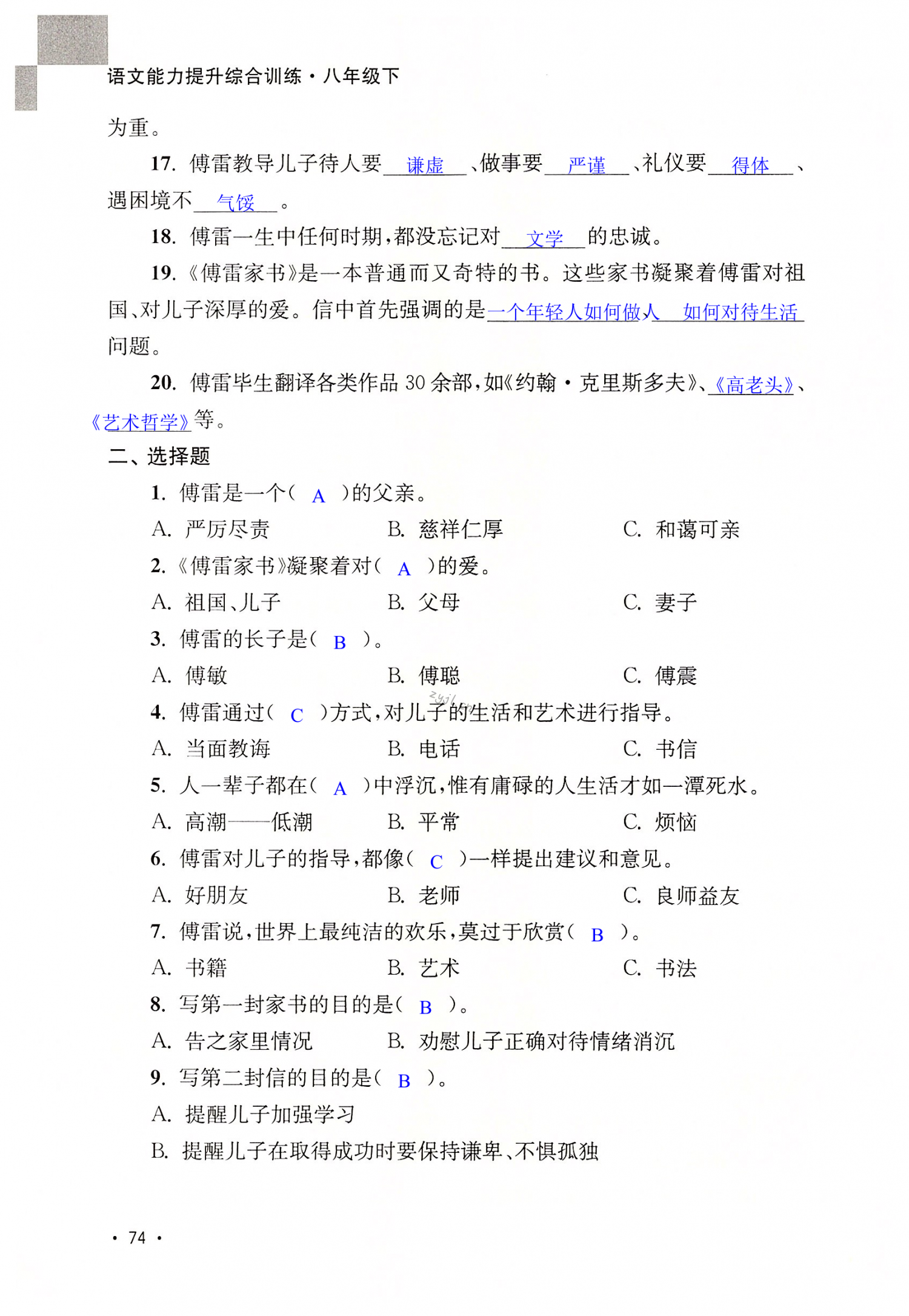 注:目前有些书本章节名称可能整理的还不是很完善,但都是按照顺序排列的,请同学们按照顺序仔细查找。练习册 2023年语文能力提升综合训练八年级语文下册 答案主要是用来给同学们做完题方便对答案用的,请勿直接抄袭。