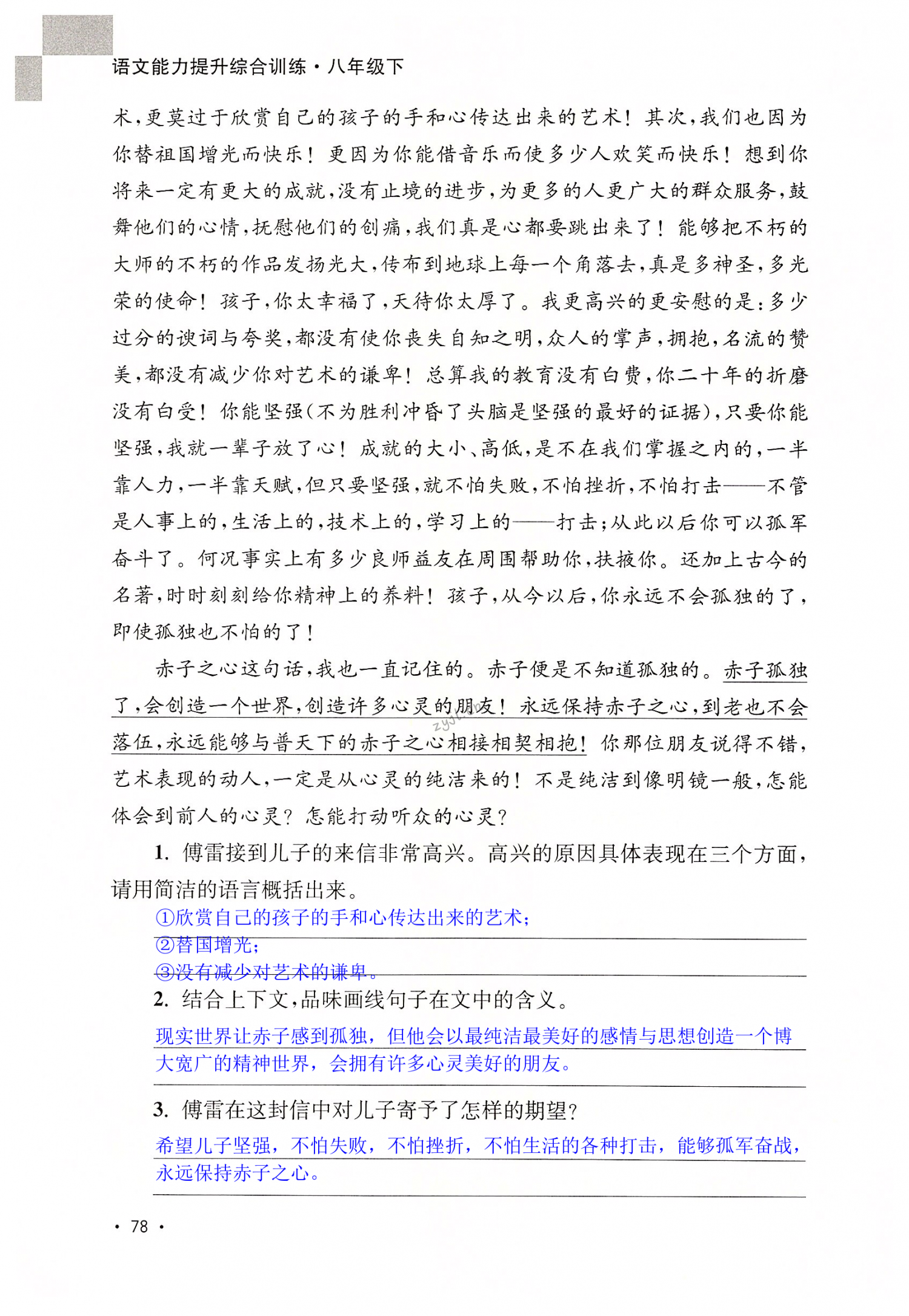 注:目前有些书本章节名称可能整理的还不是很完善,但都是按照顺序排列的,请同学们按照顺序仔细查找。练习册 2023年语文能力提升综合训练八年级语文下册 答案主要是用来给同学们做完题方便对答案用的,请勿直接抄袭。