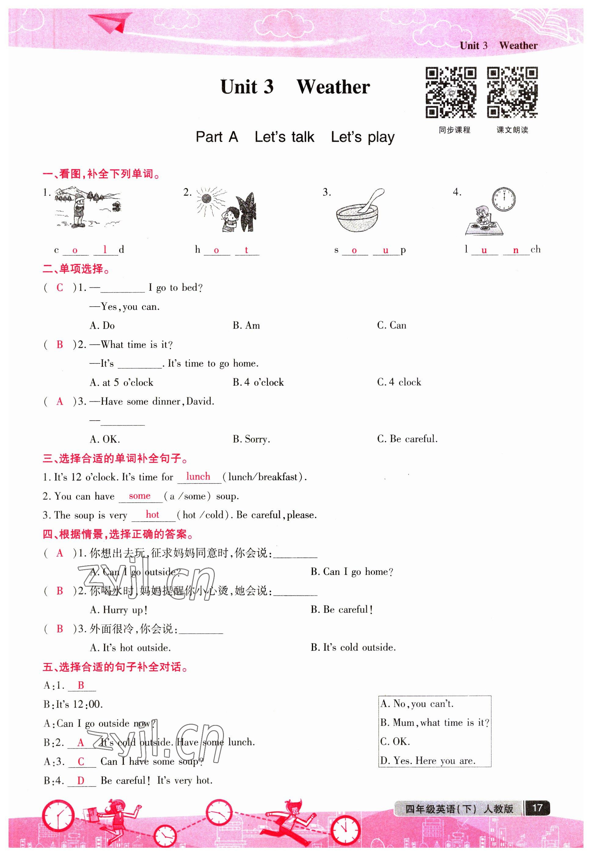 注:目前有些书本章节名称可能整理的还不是很完善,但都是按照顺序排列的,请同学们按照顺序仔细查找。练习册 2023年汇文图书卓越课堂四年级英语下册人教版 答案主要是用来给同学们做完题方便对答案用的,请勿直接抄袭。