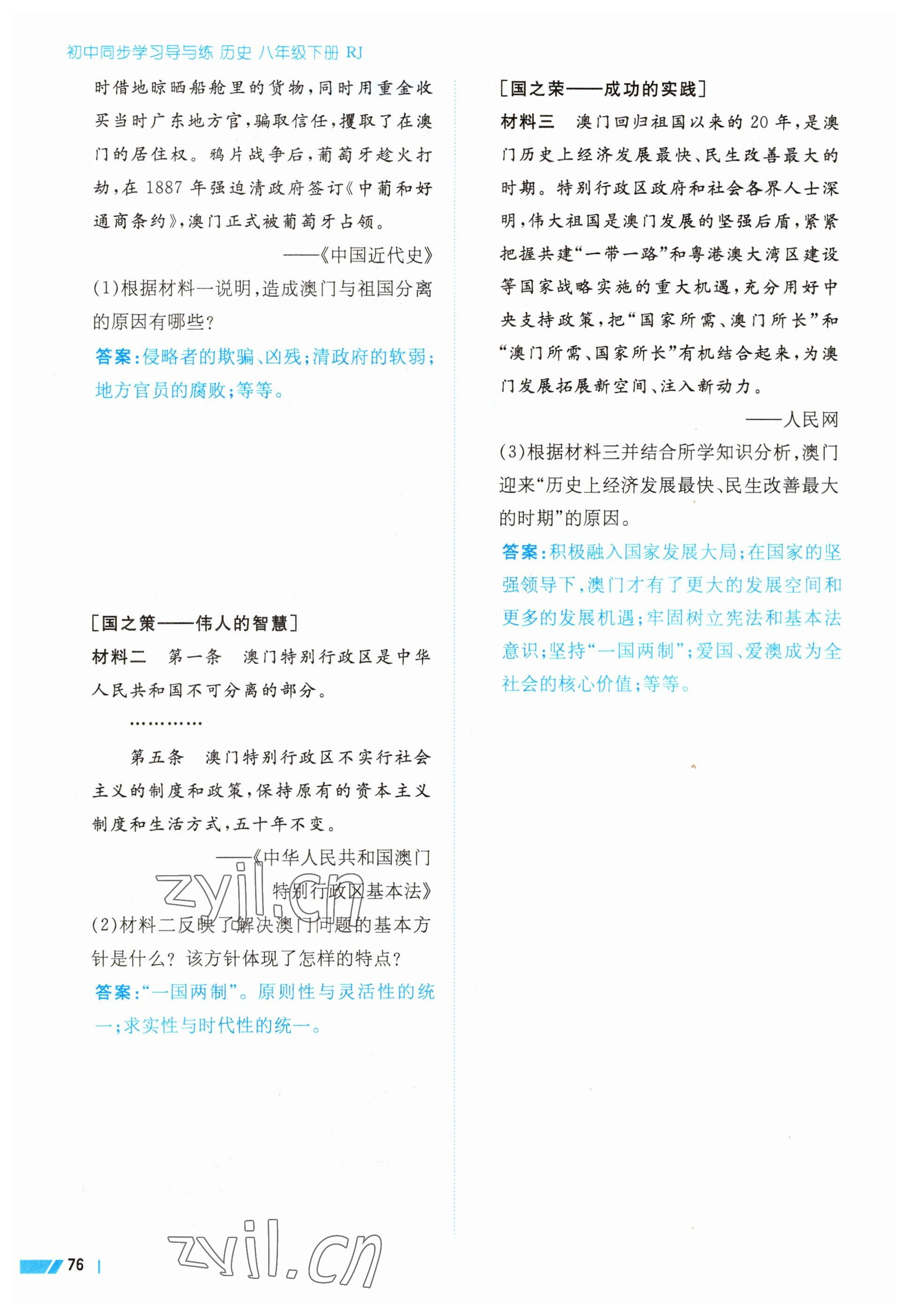 2023年导与练八年级历史下册人教版