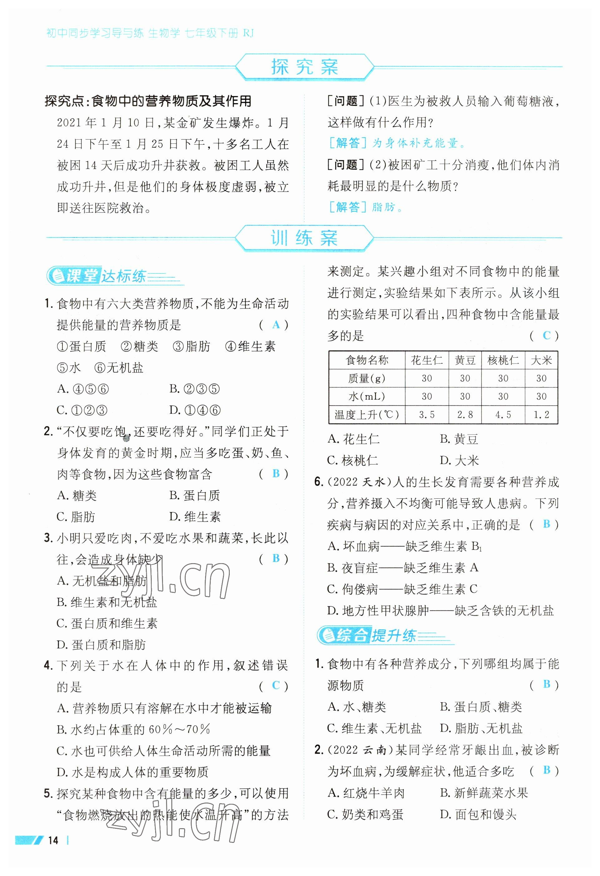 注:目前有些书本章节名称可能整理的还不是很完善,但都是按照顺序排列的,请同学们按照顺序仔细查找。练习册 2023年导与练七年级生物下册人教版 答案主要是用来给同学们做完题方便对答案用的,请勿直接抄袭。