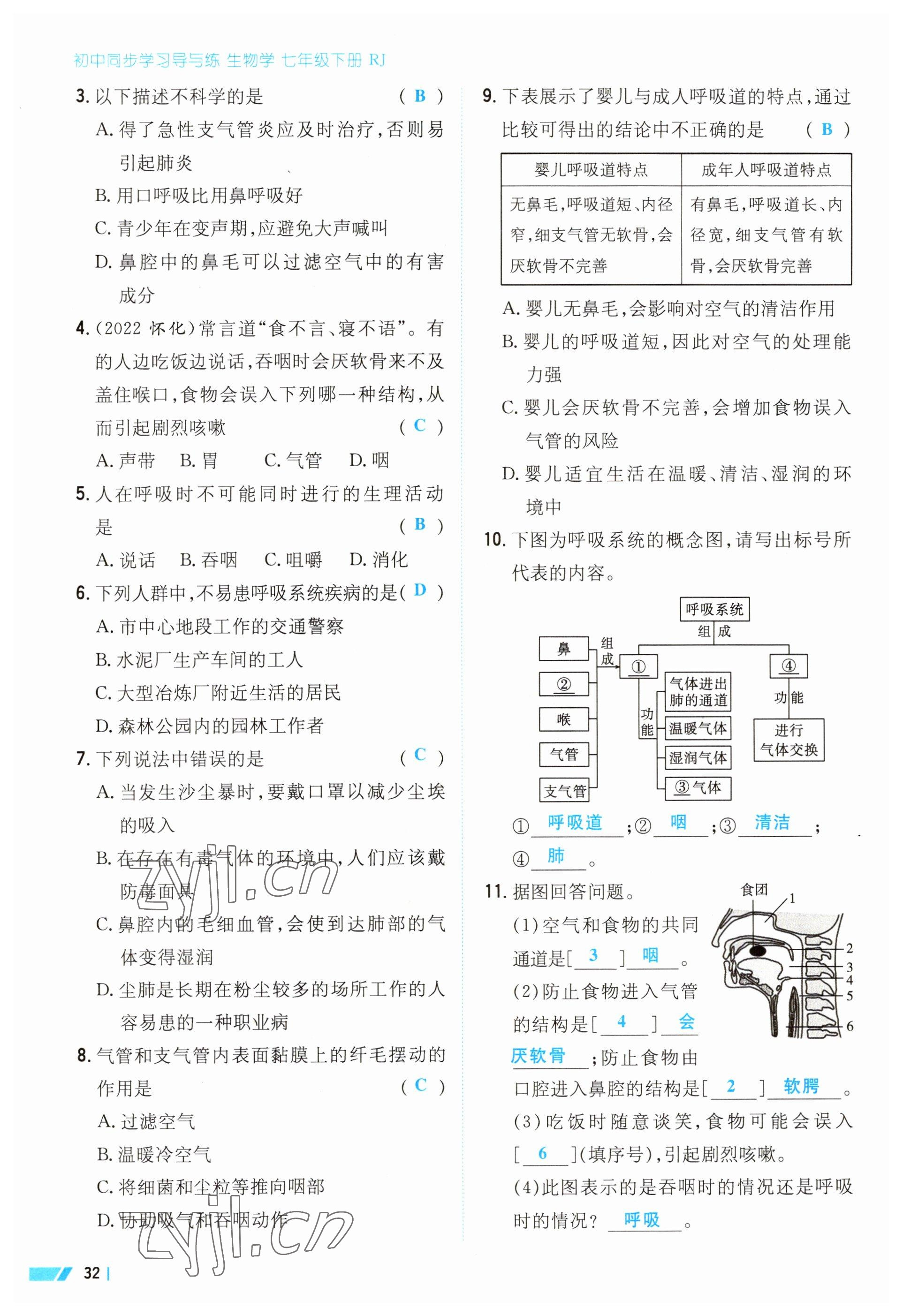 注:目前有些书本章节名称可能整理的还不是很完善,但都是按照顺序排列的,请同学们按照顺序仔细查找。练习册 2023年导与练七年级生物下册人教版 答案主要是用来给同学们做完题方便对答案用的,请勿直接抄袭。