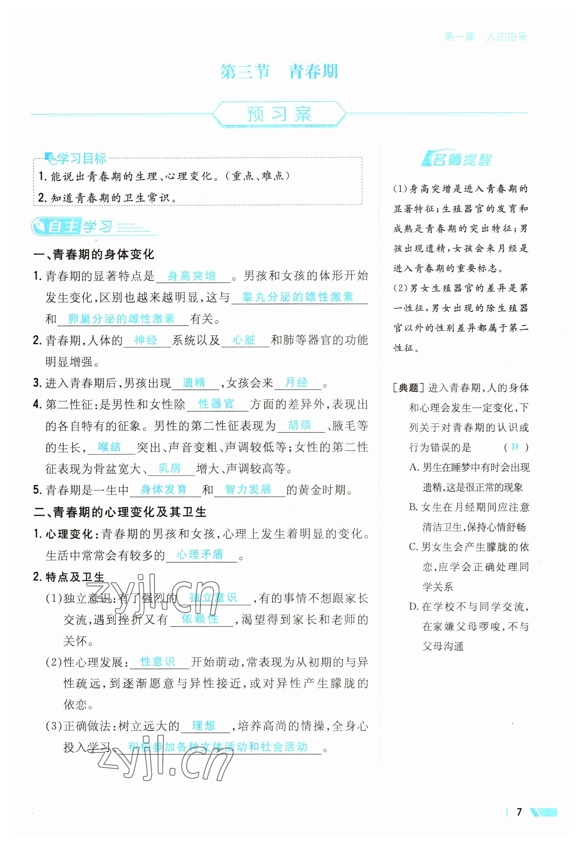 注:目前有些书本章节名称可能整理的还不是很完善,但都是按照顺序排列的,请同学们按照顺序仔细查找。练习册 2023年导与练七年级生物下册人教版 答案主要是用来给同学们做完题方便对答案用的,请勿直接抄袭。