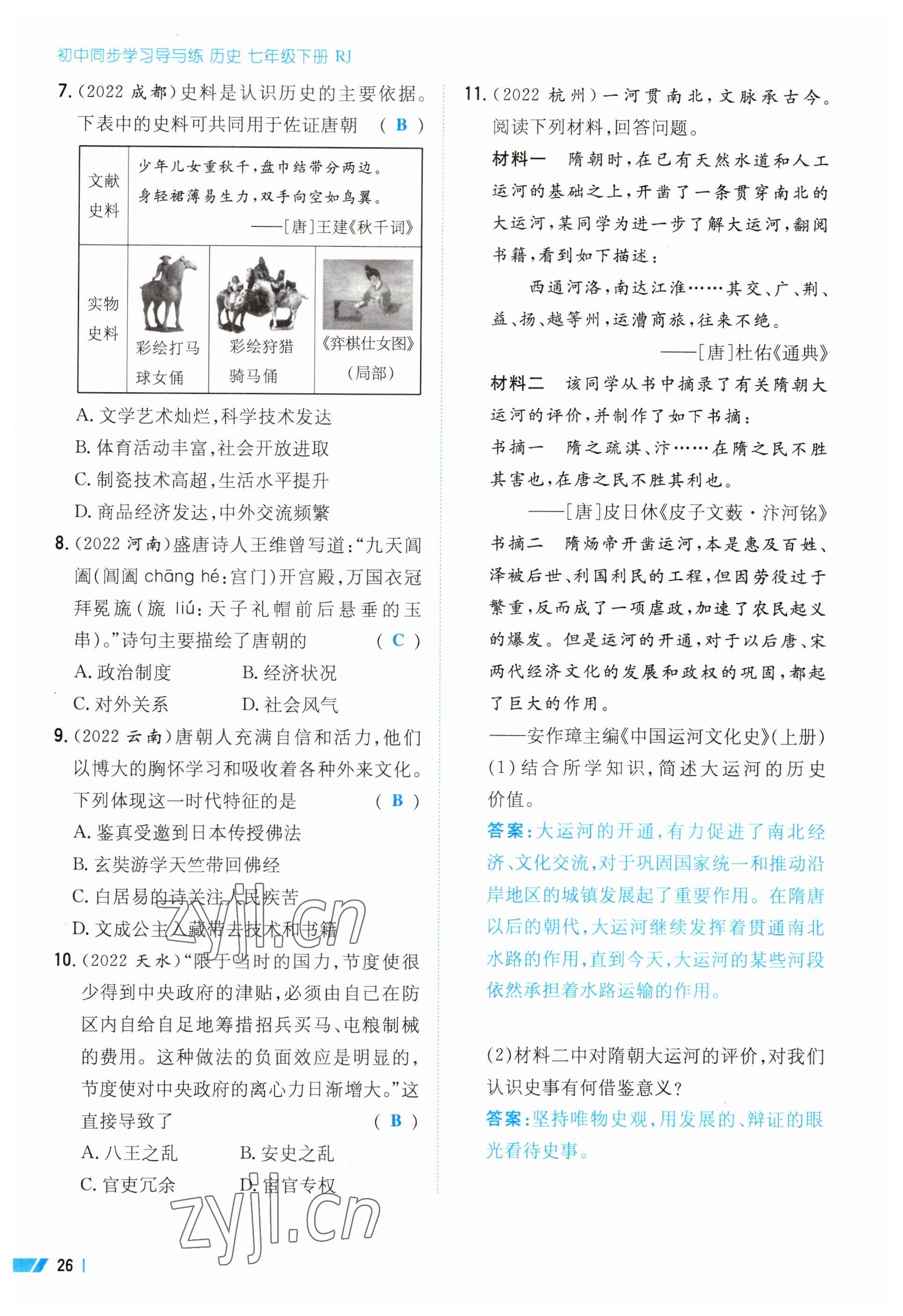 注:目前有些书本章节名称可能整理的还不是很完善,但都是按照顺序排列的,请同学们按照顺序仔细查找。练习册 2023年导与练七年级历史下册人教版 答案主要是用来给同学们做完题方便对答案用的,请勿直接抄袭。