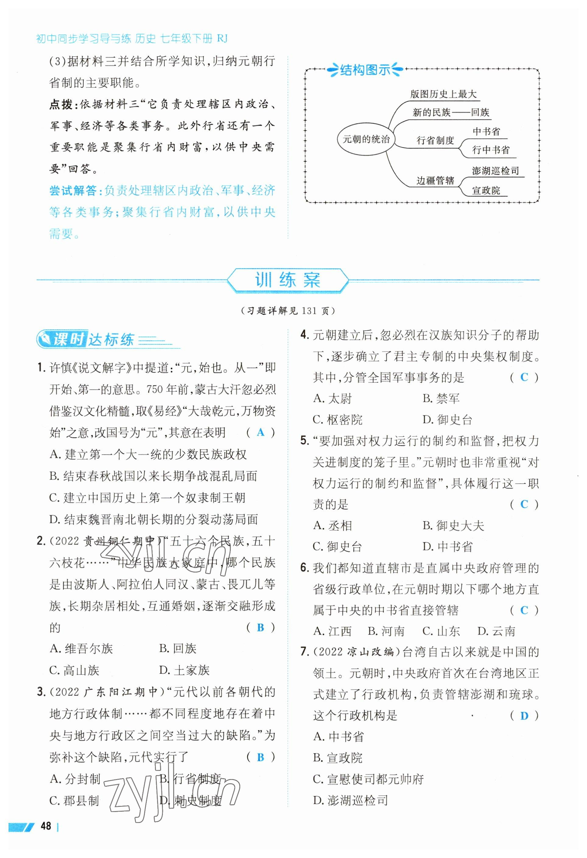 注:目前有些书本章节名称可能整理的还不是很完善,但都是按照顺序排列的,请同学们按照顺序仔细查找。练习册 2023年导与练七年级历史下册人教版 答案主要是用来给同学们做完题方便对答案用的,请勿直接抄袭。
