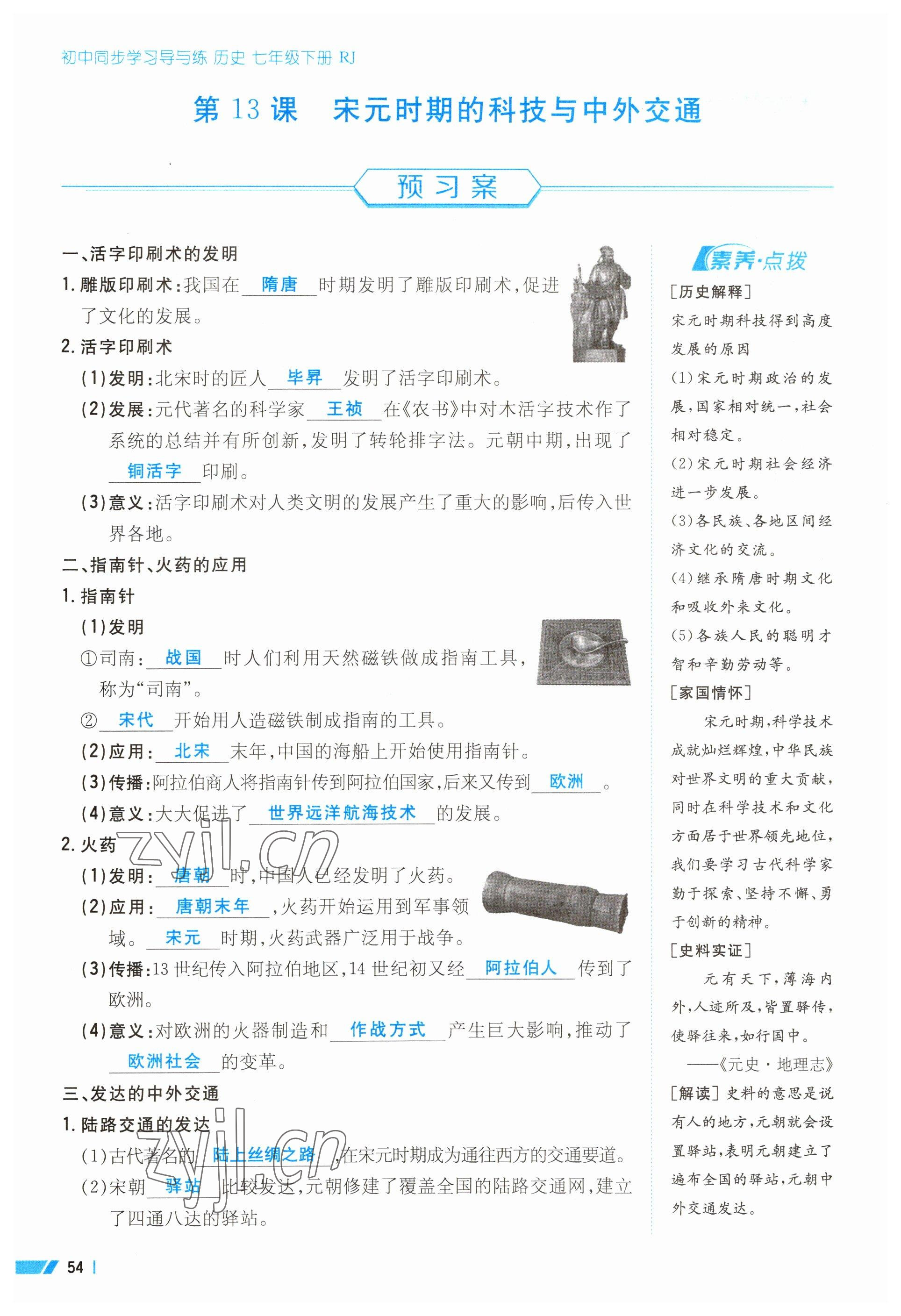 2023年导与练七年级历史下册人教版