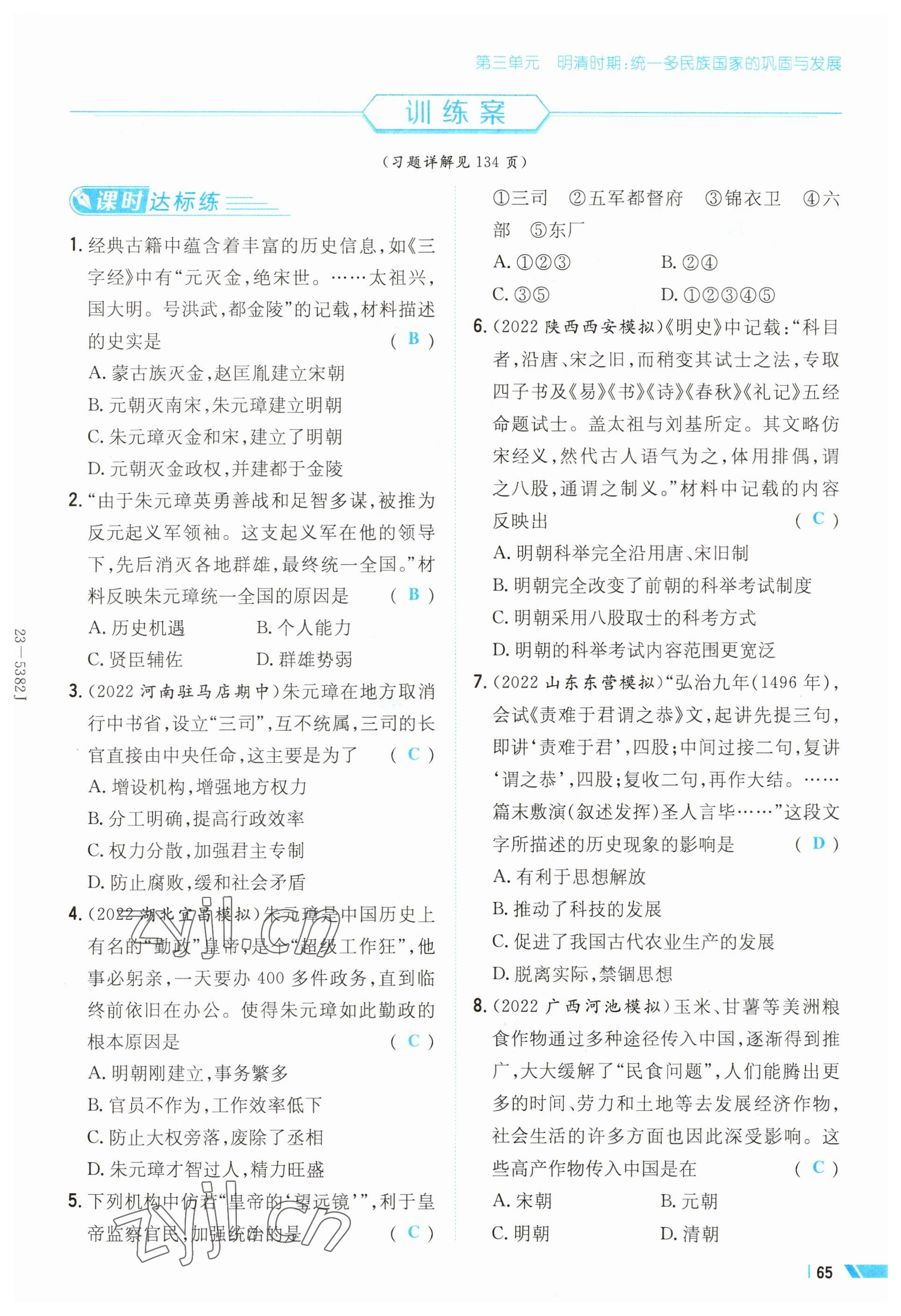 2023年导与练七年级历史下册人教版