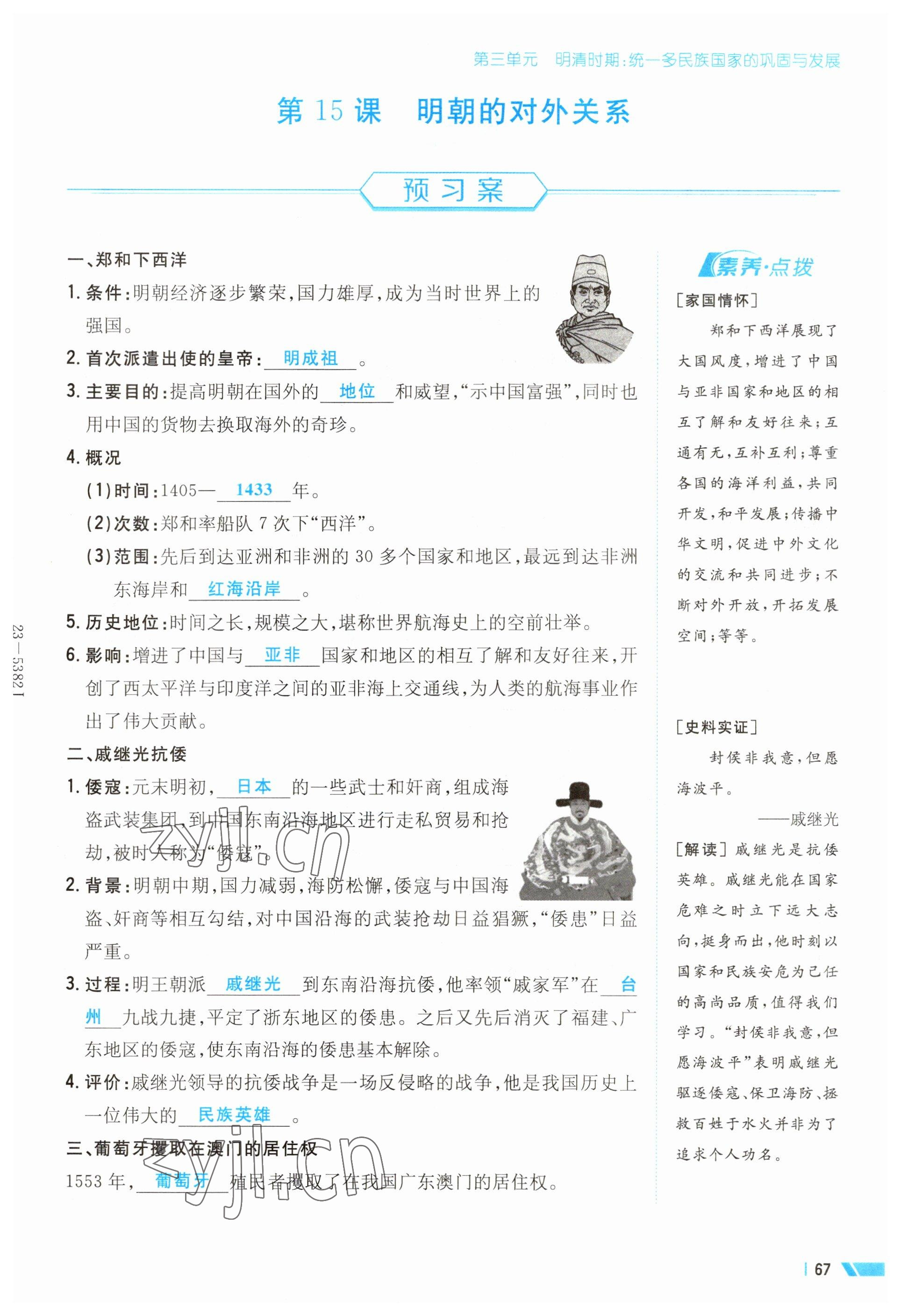 2023年导与练七年级历史下册人教版