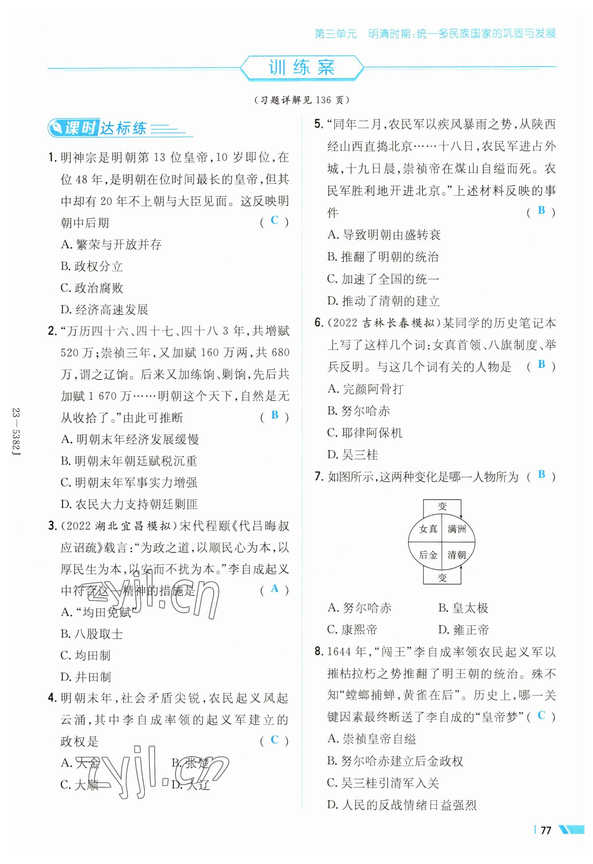 注:目前有些书本章节名称可能整理的还不是很完善,但都是按照顺序排列的,请同学们按照顺序仔细查找。练习册 2023年导与练七年级历史下册人教版 答案主要是用来给同学们做完题方便对答案用的,请勿直接抄袭。