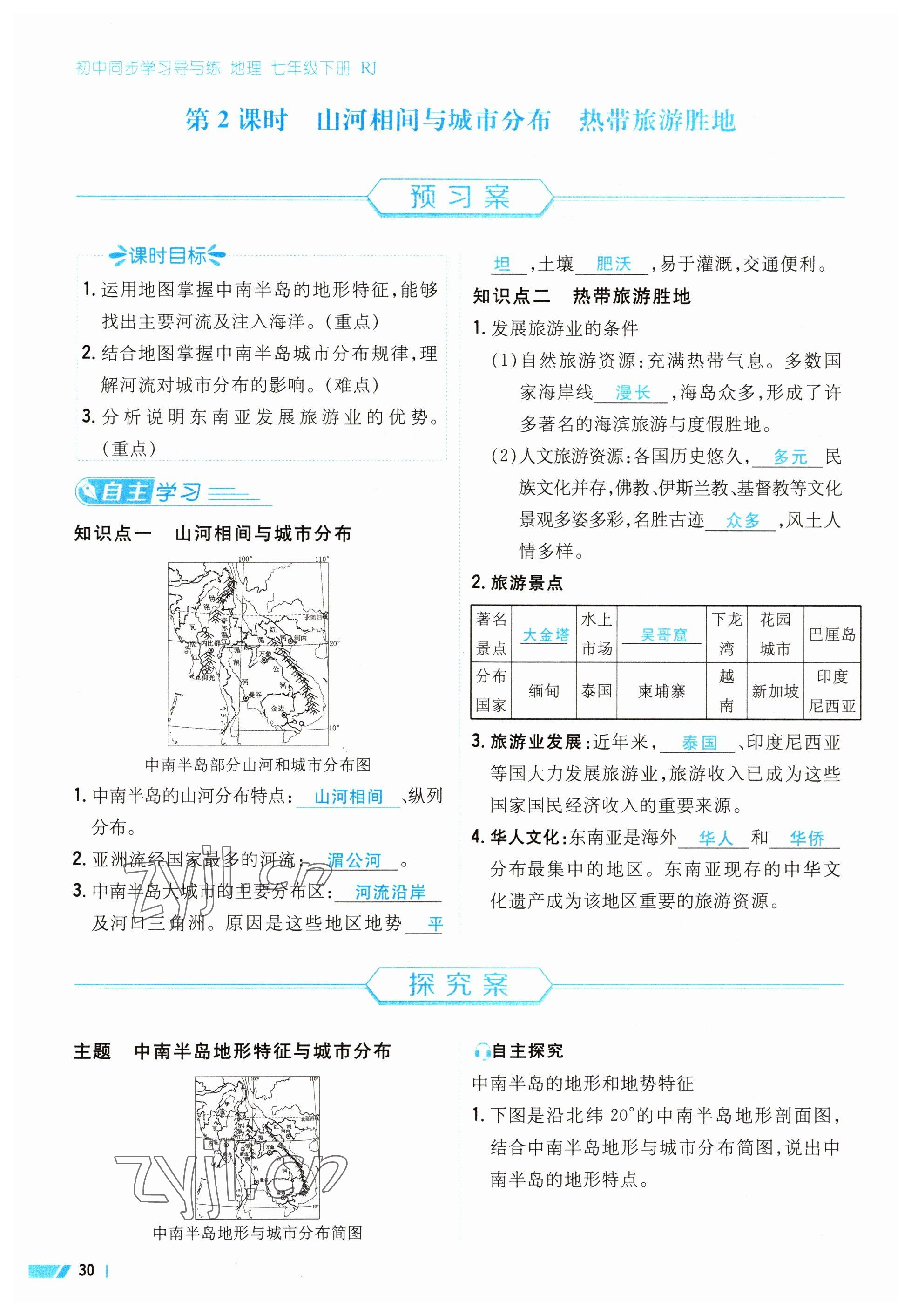 2023年导与练七年级地理下册人教版