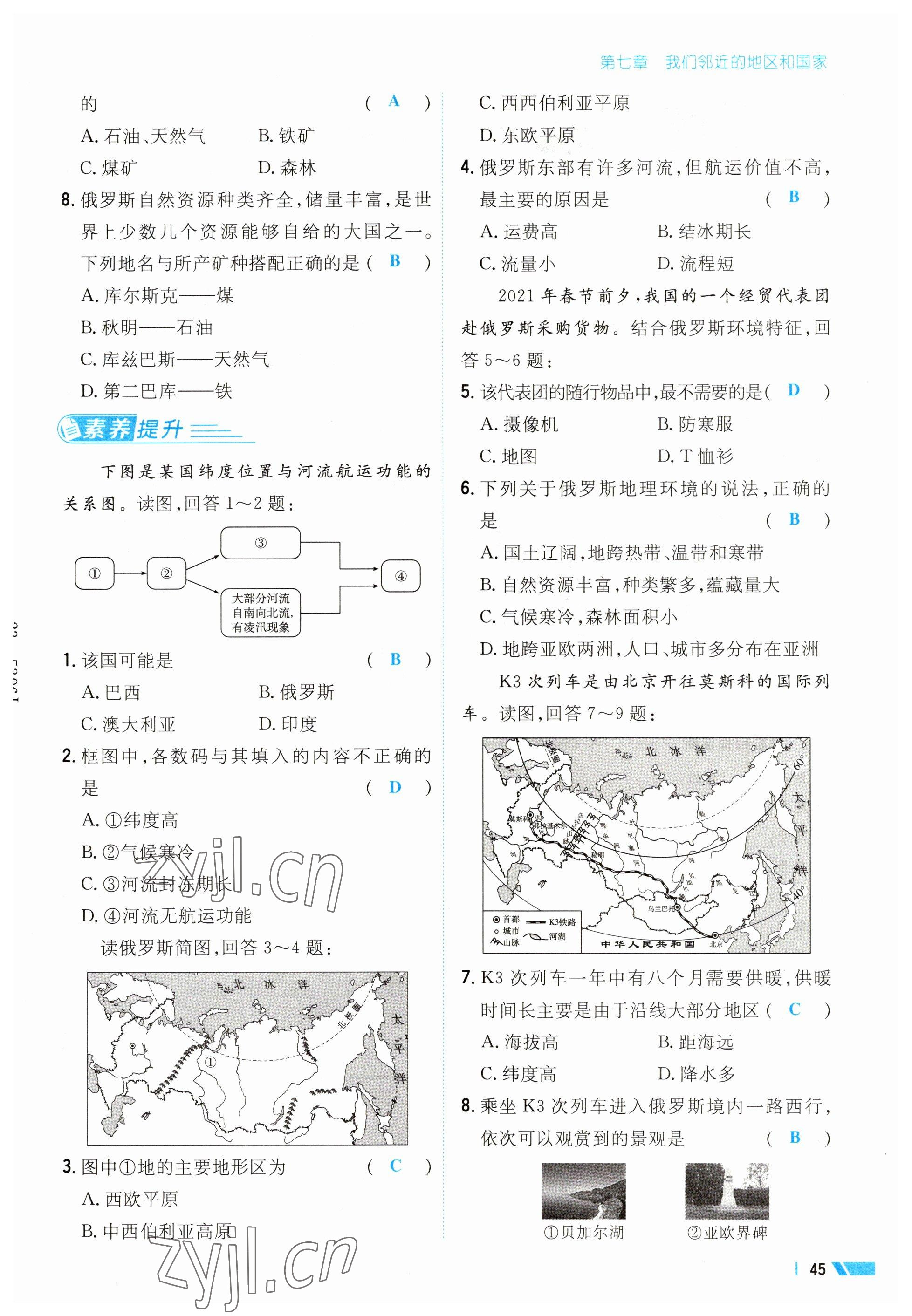 注:目前有些书本章节名称可能整理的还不是很完善,但都是按照顺序排列的,请同学们按照顺序仔细查找。练习册 2023年导与练七年级地理下册人教版 答案主要是用来给同学们做完题方便对答案用的,请勿直接抄袭。