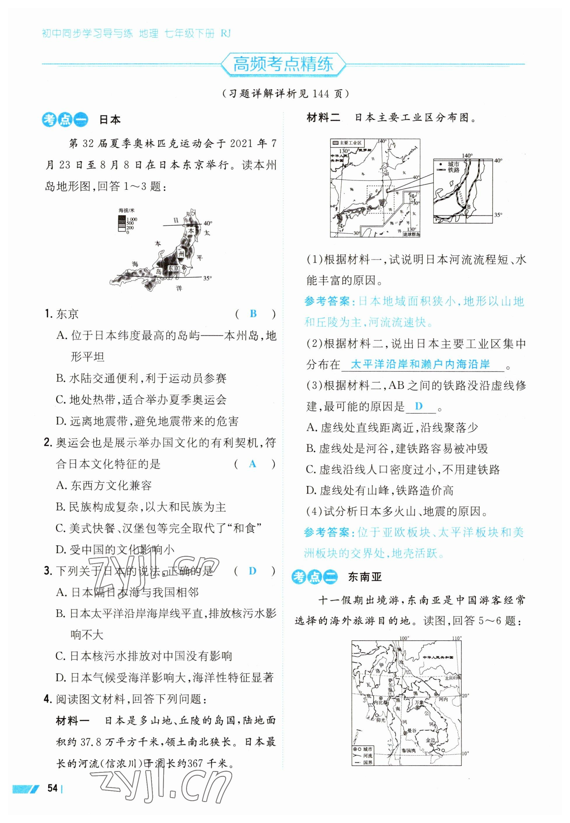 注:目前有些书本章节名称可能整理的还不是很完善,但都是按照顺序排列的,请同学们按照顺序仔细查找。练习册 2023年导与练七年级地理下册人教版 答案主要是用来给同学们做完题方便对答案用的,请勿直接抄袭。