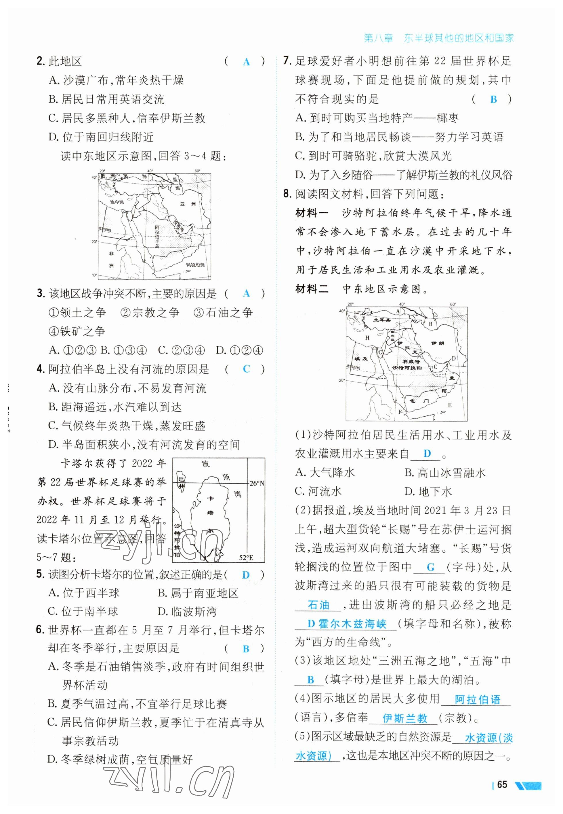 注:目前有些书本章节名称可能整理的还不是很完善,但都是按照顺序排列的,请同学们按照顺序仔细查找。练习册 2023年导与练七年级地理下册人教版 答案主要是用来给同学们做完题方便对答案用的,请勿直接抄袭。