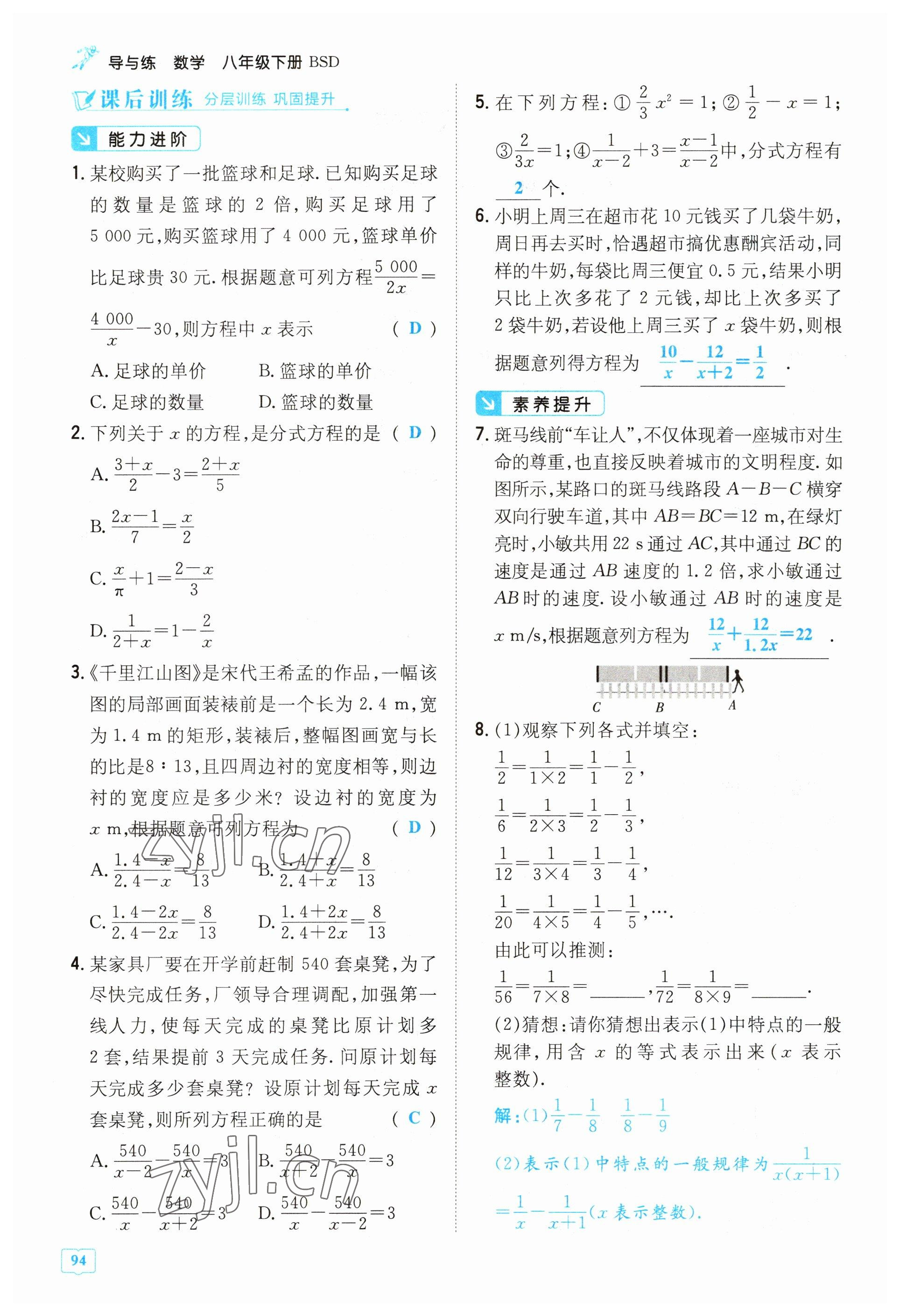 《2023年导与练八年级数学下册北师大版贵阳专版》