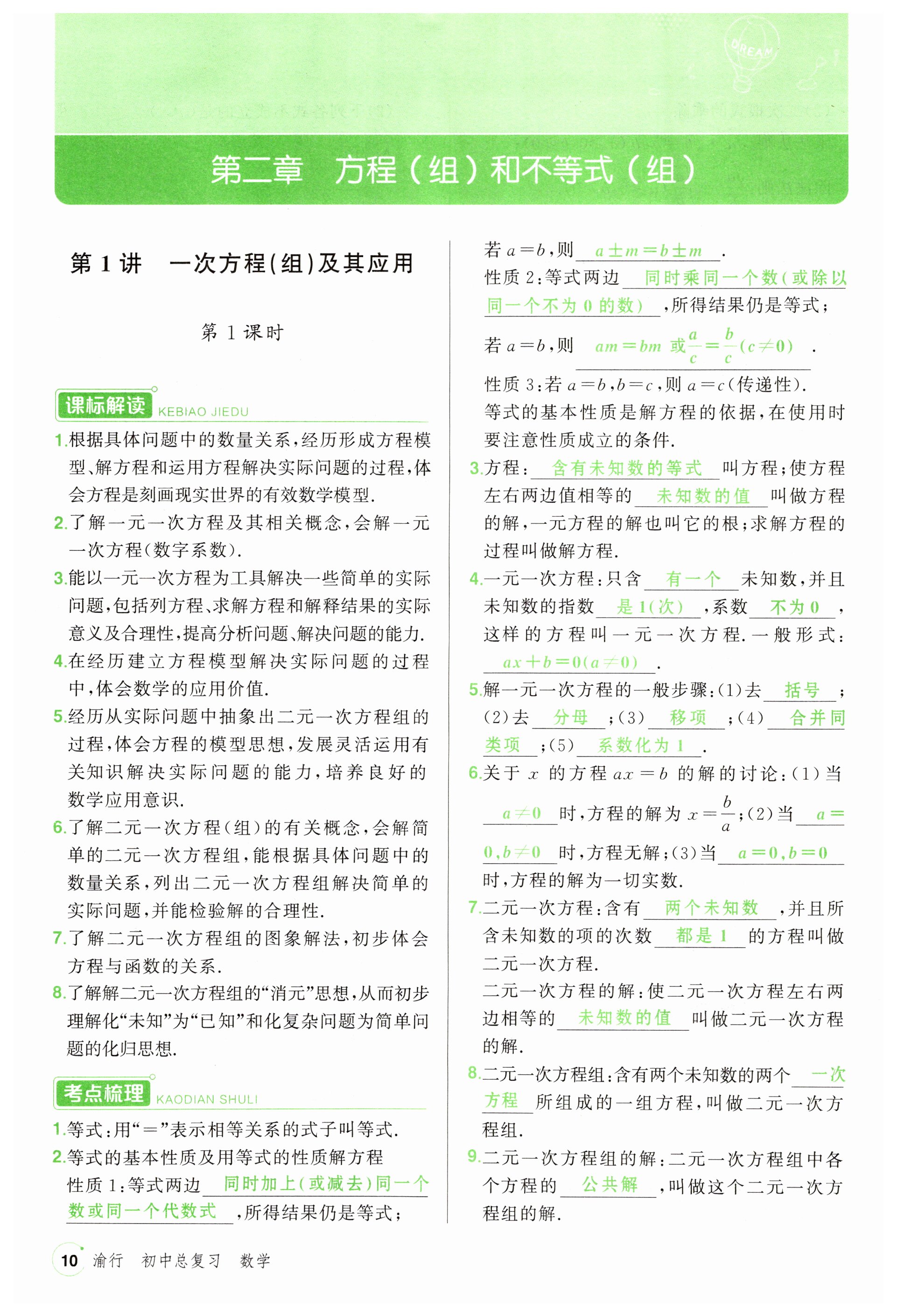 注:目前有些书本章节名称可能整理的还不是很完善,但都是按照顺序排列的,请同学们按照顺序仔细查找。练习册 2023年渝行初中总复习数学重庆专版 答案主要是用来给同学们做完题方便对答案用的,请勿直接抄袭。