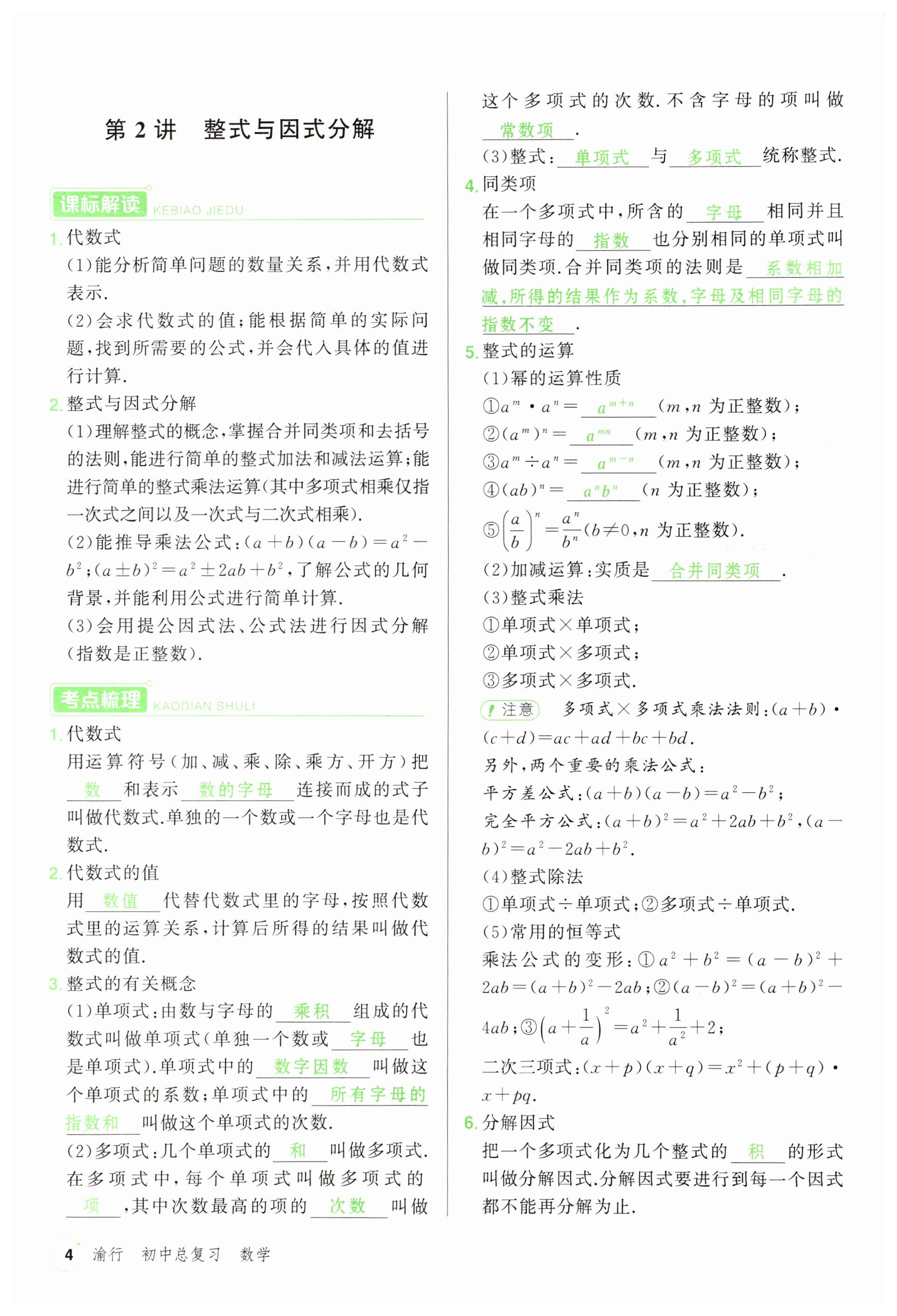 注:目前有些书本章节名称可能整理的还不是很完善,但都是按照顺序排列的,请同学们按照顺序仔细查找。练习册 2023年渝行初中总复习数学重庆专版 答案主要是用来给同学们做完题方便对答案用的,请勿直接抄袭。