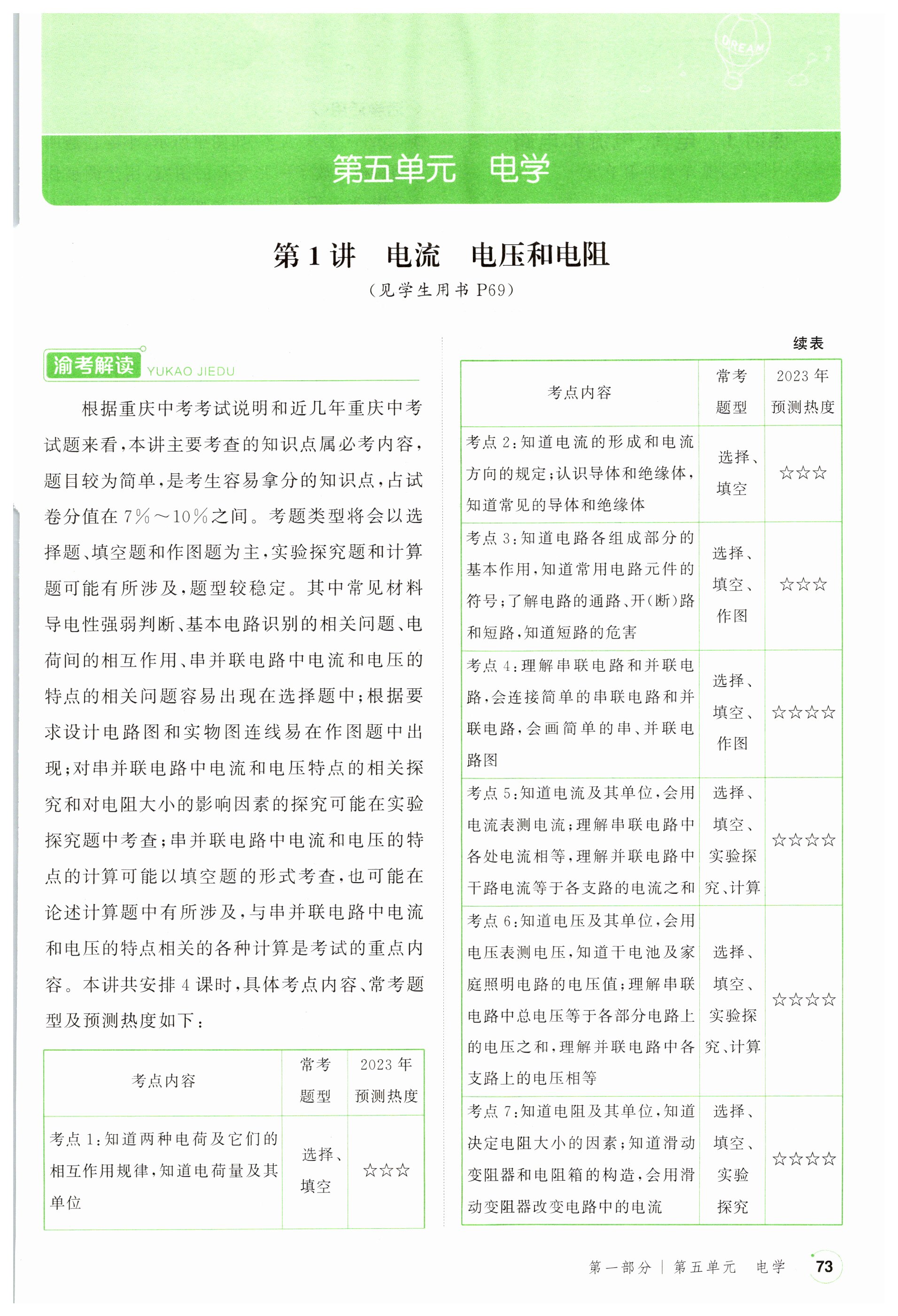2023年渝行初中总复习物理重庆专版