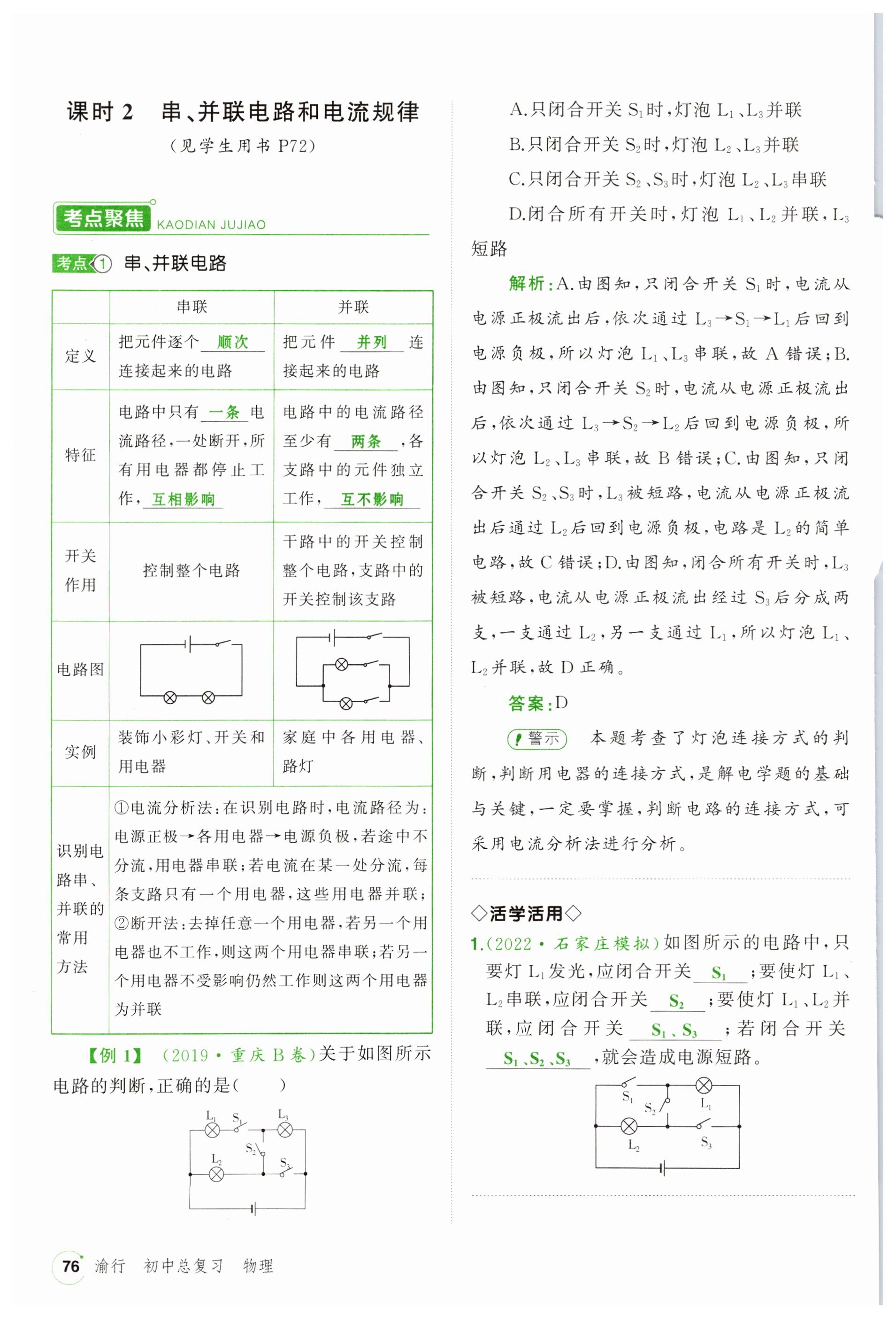 注:目前有些书本章节名称可能整理的还不是很完善,但都是按照顺序排列的,请同学们按照顺序仔细查找。练习册 2023年渝行初中总复习物理重庆专版 答案主要是用来给同学们做完题方便对答案用的,请勿直接抄袭。