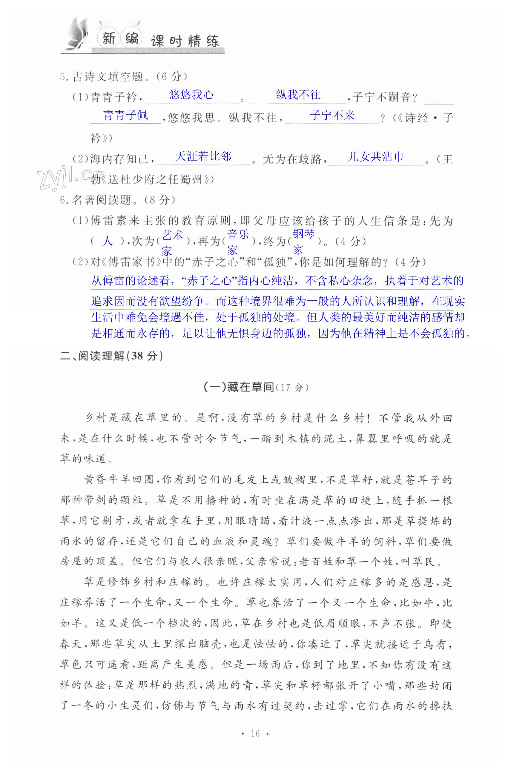 注:目前有些书本章节名称可能整理的还不是很完善,但都是按照顺序排列的,请同学们按照顺序仔细查找。练习册 2023年新编课时精练八年级语文下册人教版 答案主要是用来给同学们做完题方便对答案用的,请勿直接抄袭。