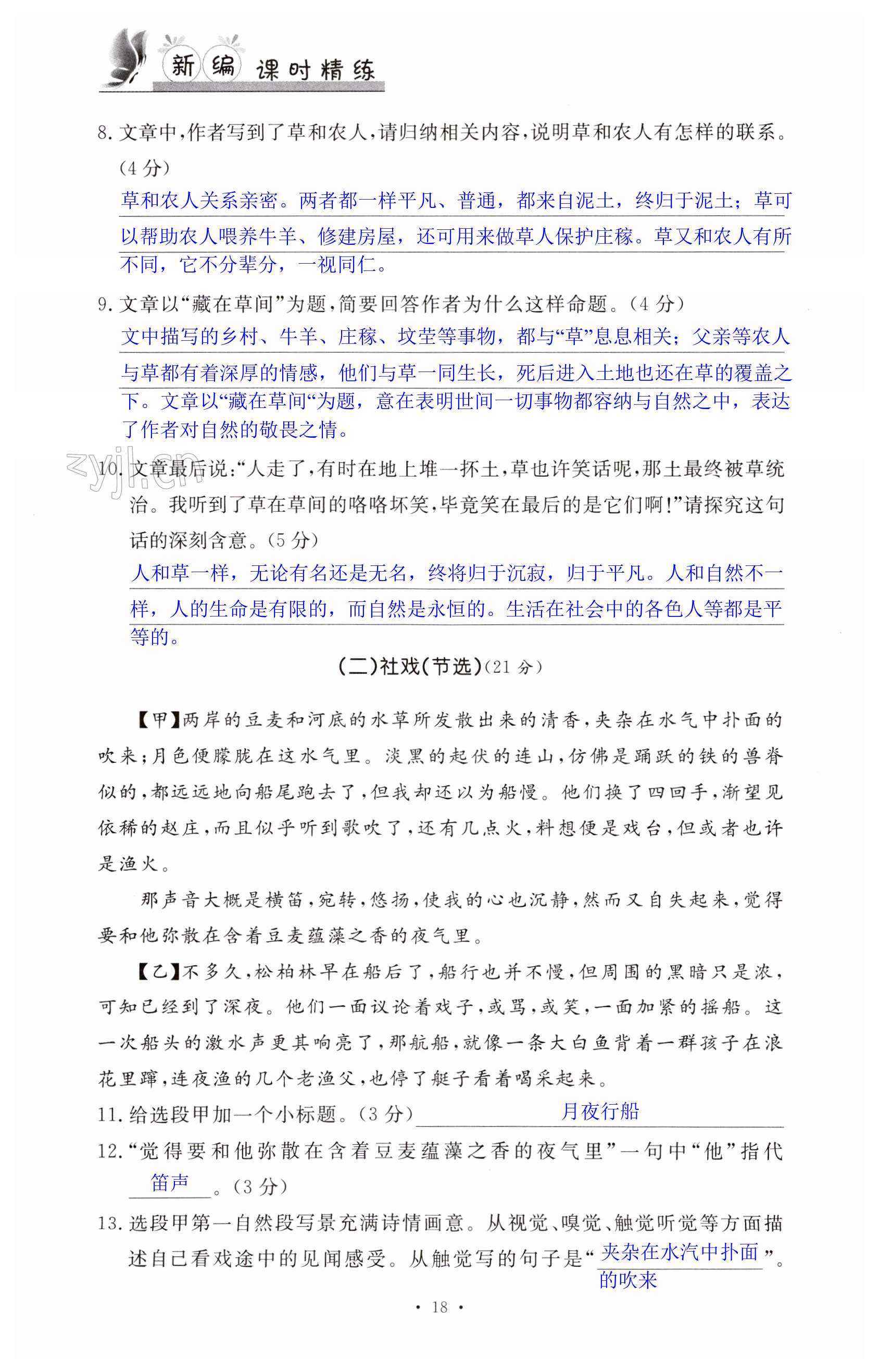 注:目前有些书本章节名称可能整理的还不是很完善,但都是按照顺序排列的,请同学们按照顺序仔细查找。练习册 2023年新编课时精练八年级语文下册人教版 答案主要是用来给同学们做完题方便对答案用的,请勿直接抄袭。