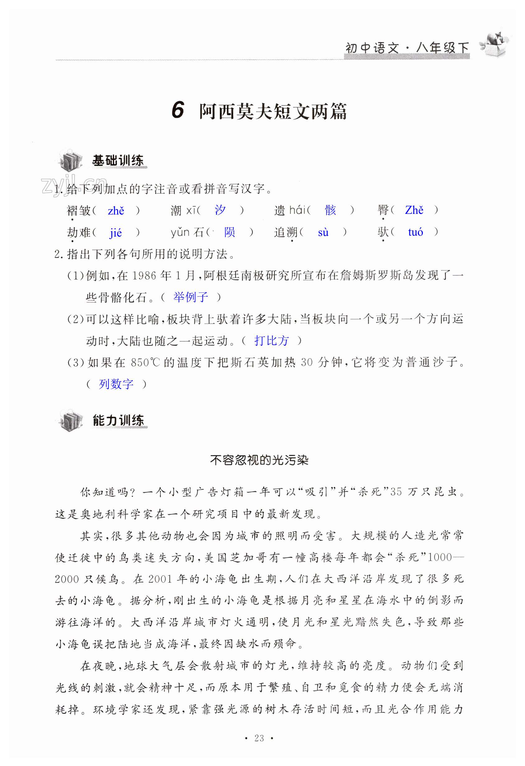 注:目前有些书本章节名称可能整理的还不是很完善,但都是按照顺序排列的,请同学们按照顺序仔细查找。练习册 2023年新编课时精练八年级语文下册人教版 答案主要是用来给同学们做完题方便对答案用的,请勿直接抄袭。
