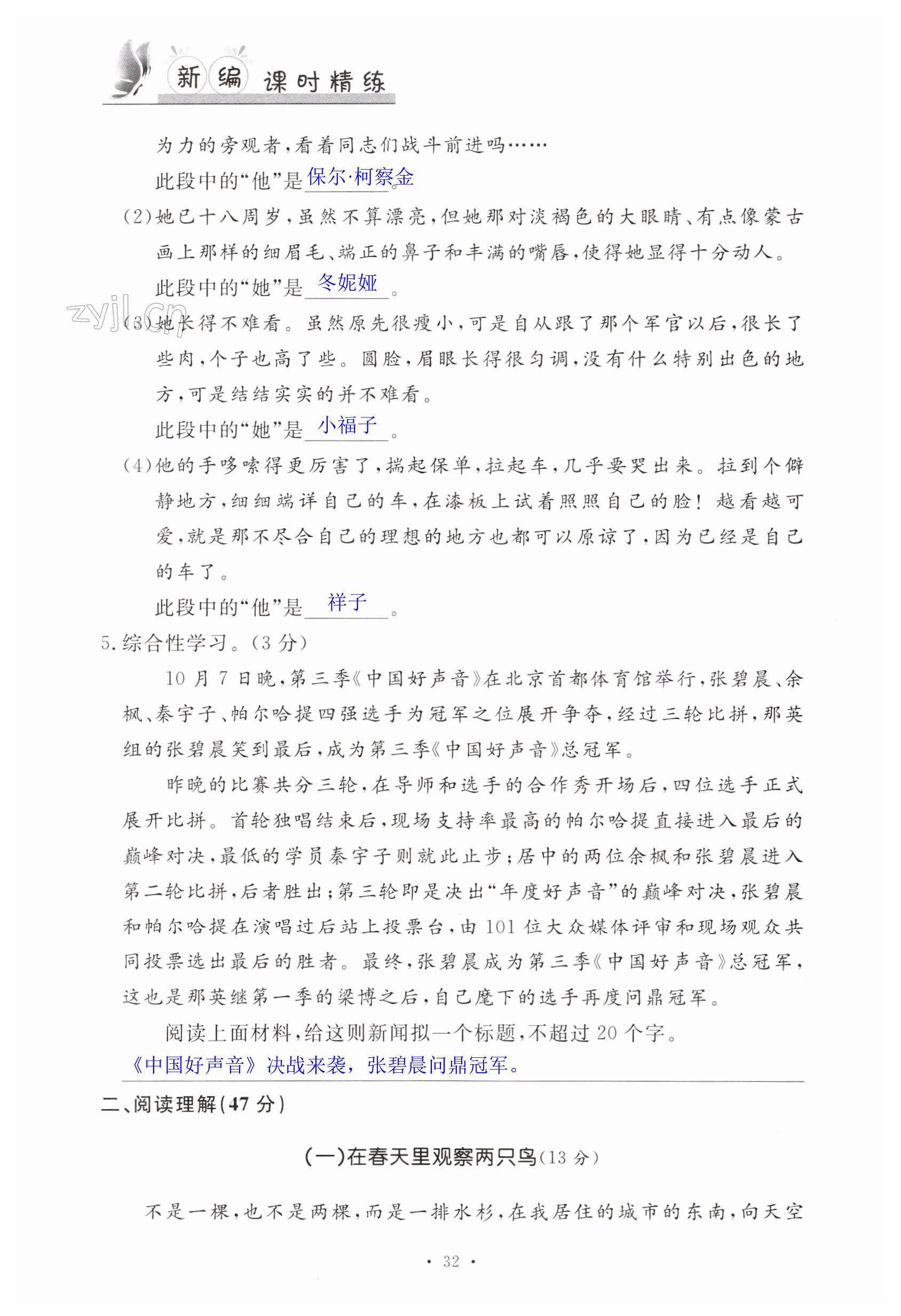 注:目前有些书本章节名称可能整理的还不是很完善,但都是按照顺序排列的,请同学们按照顺序仔细查找。练习册 2023年新编课时精练八年级语文下册人教版 答案主要是用来给同学们做完题方便对答案用的,请勿直接抄袭。