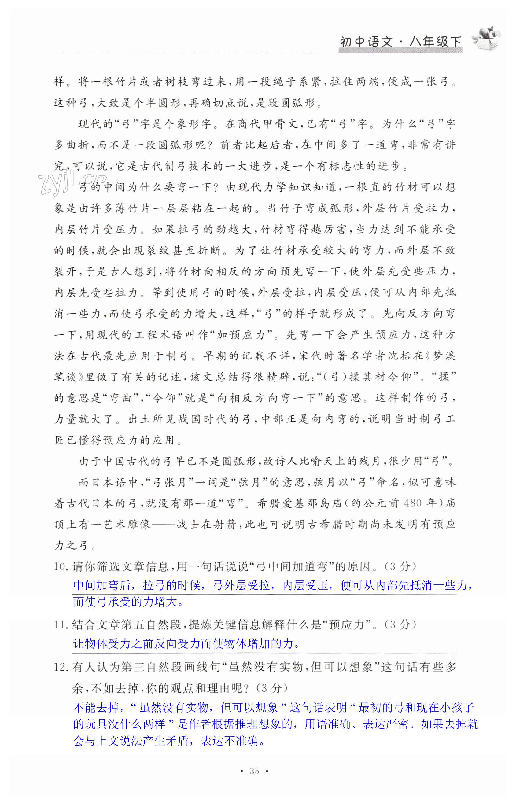 注:目前有些书本章节名称可能整理的还不是很完善,但都是按照顺序排列的,请同学们按照顺序仔细查找。练习册 2023年新编课时精练八年级语文下册人教版 答案主要是用来给同学们做完题方便对答案用的,请勿直接抄袭。