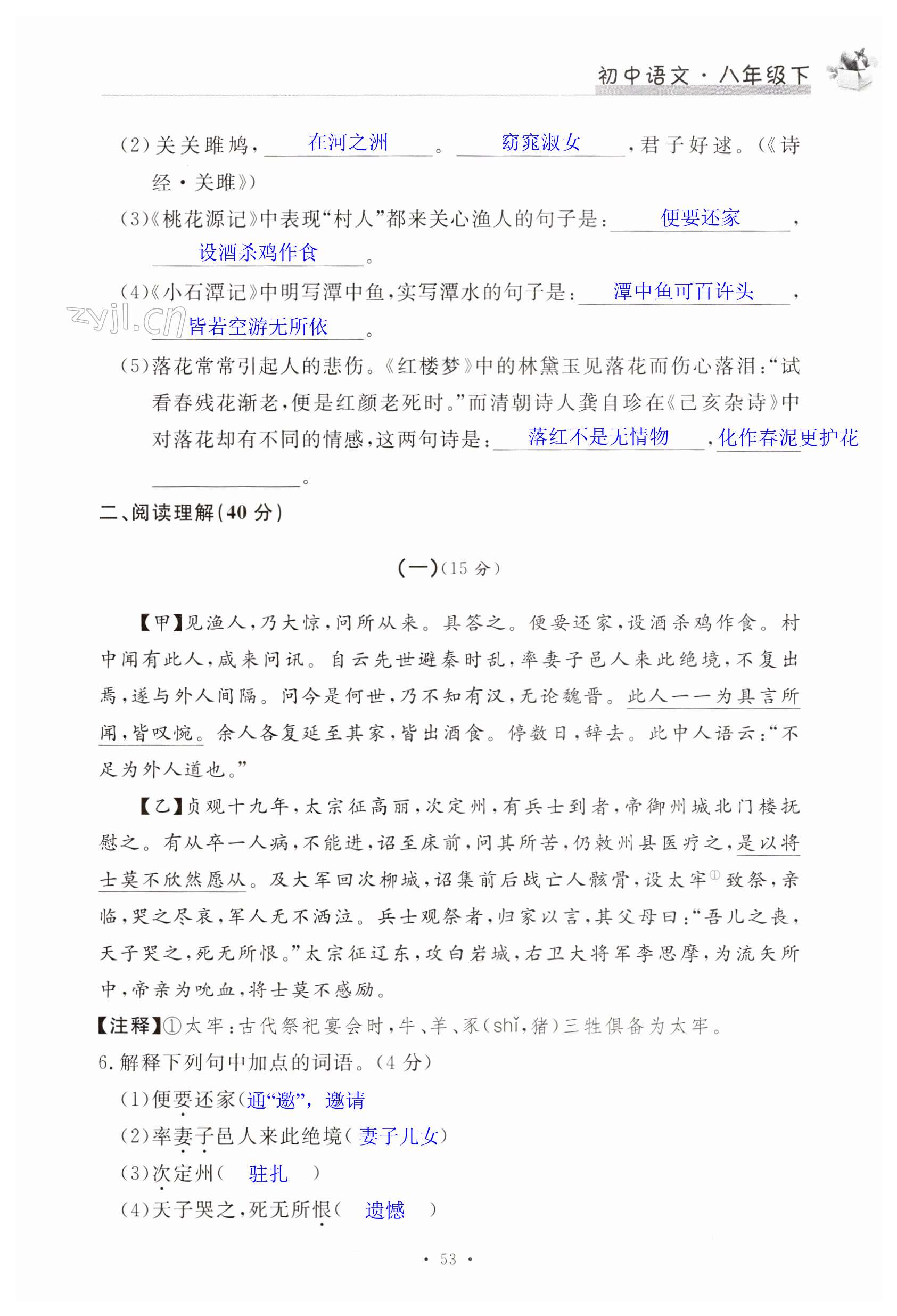 注:目前有些书本章节名称可能整理的还不是很完善,但都是按照顺序排列的,请同学们按照顺序仔细查找。练习册 2023年新编课时精练八年级语文下册人教版 答案主要是用来给同学们做完题方便对答案用的,请勿直接抄袭。