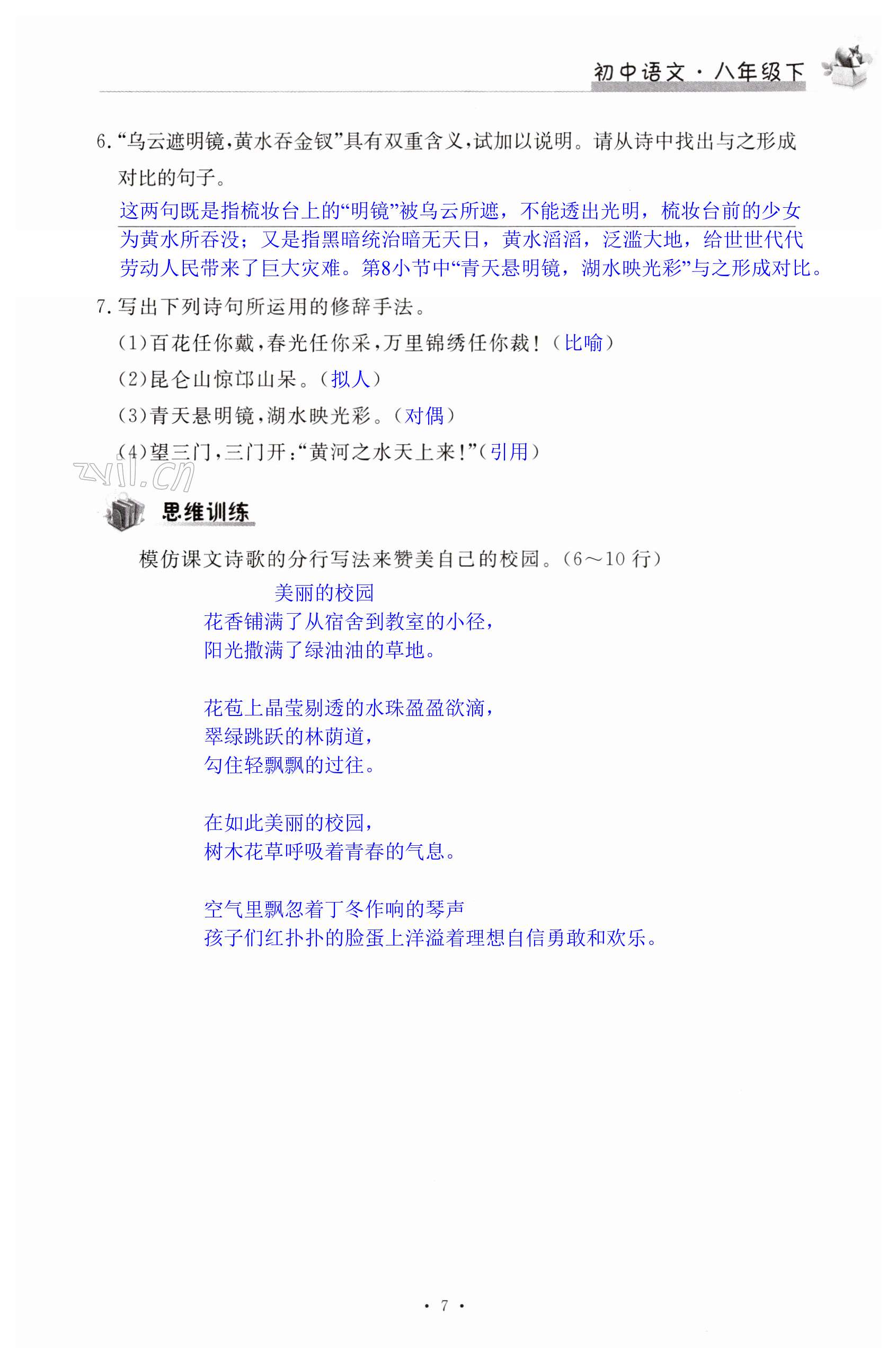 注:目前有些书本章节名称可能整理的还不是很完善,但都是按照顺序排列的,请同学们按照顺序仔细查找。练习册 2023年新编课时精练八年级语文下册人教版 答案主要是用来给同学们做完题方便对答案用的,请勿直接抄袭。