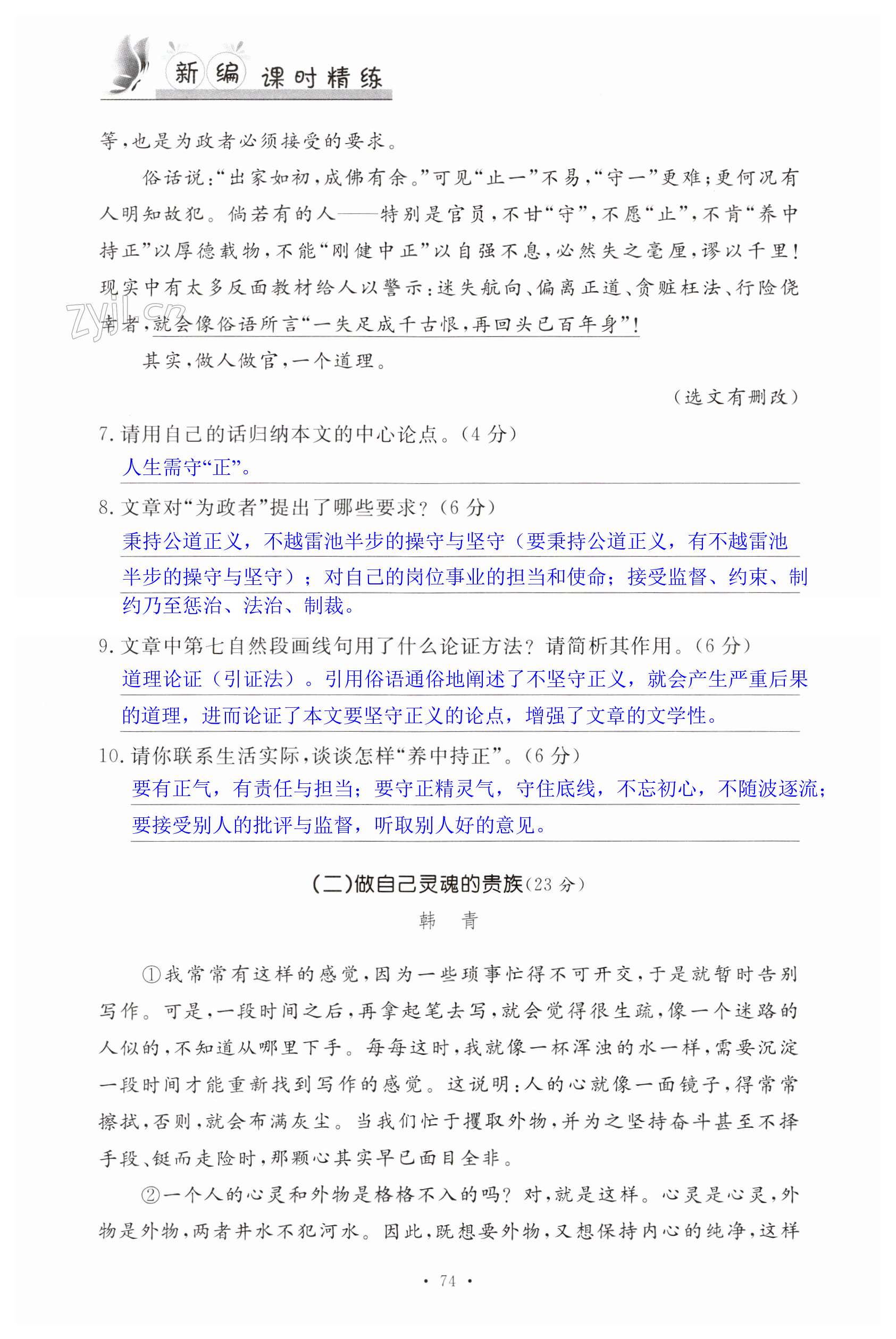 注:目前有些书本章节名称可能整理的还不是很完善,但都是按照顺序排列的,请同学们按照顺序仔细查找。练习册 2023年新编课时精练八年级语文下册人教版 答案主要是用来给同学们做完题方便对答案用的,请勿直接抄袭。