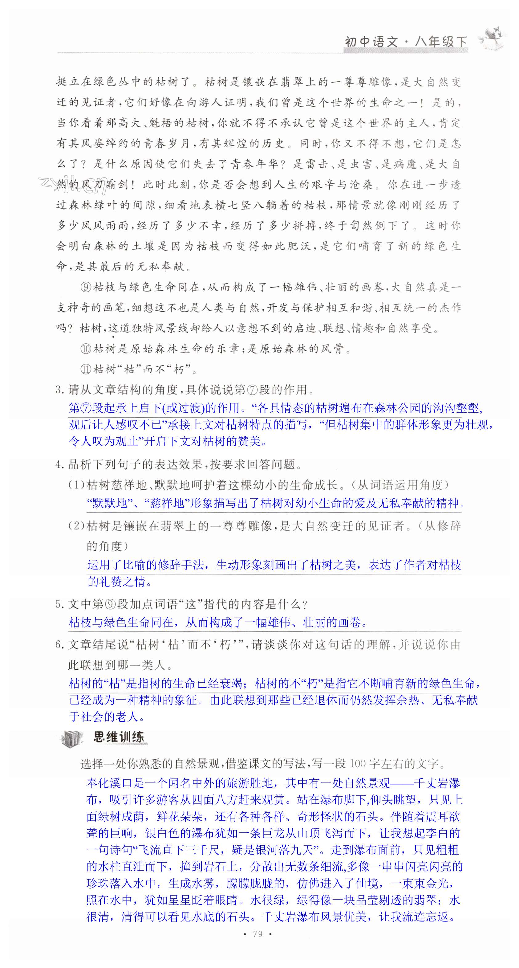 注:目前有些书本章节名称可能整理的还不是很完善,但都是按照顺序排列的,请同学们按照顺序仔细查找。练习册 2023年新编课时精练八年级语文下册人教版 答案主要是用来给同学们做完题方便对答案用的,请勿直接抄袭。