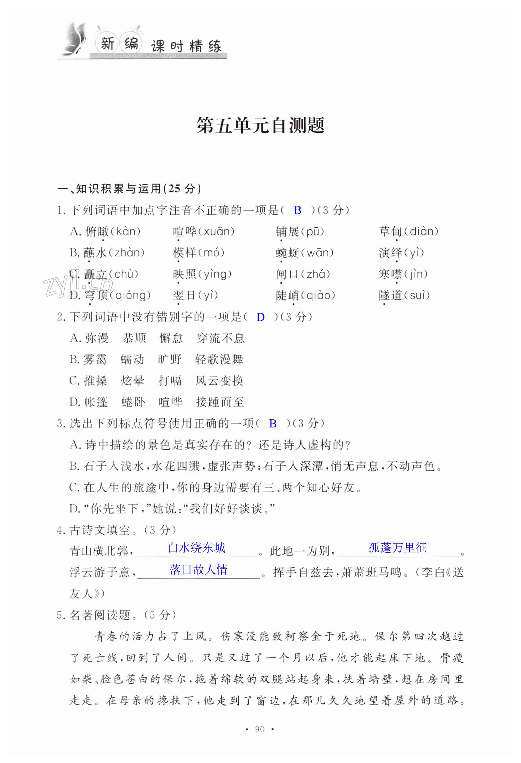 注:目前有些书本章节名称可能整理的还不是很完善,但都是按照顺序排列的,请同学们按照顺序仔细查找。练习册 2023年新编课时精练八年级语文下册人教版 答案主要是用来给同学们做完题方便对答案用的,请勿直接抄袭。