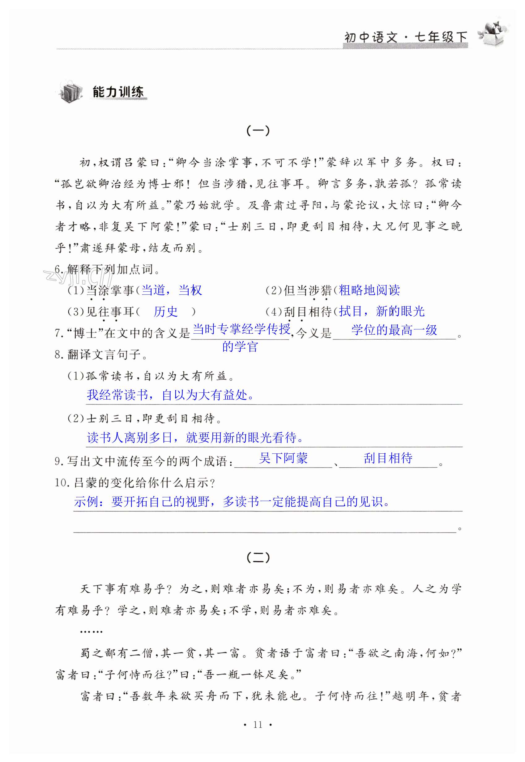 注:目前有些书本章节名称可能整理的还不是很完善,但都是按照顺序排列的,请同学们按照顺序仔细查找。练习册 2023年新编课时精练七年级语文下册人教版 答案主要是用来给同学们做完题方便对答案用的,请勿直接抄袭。