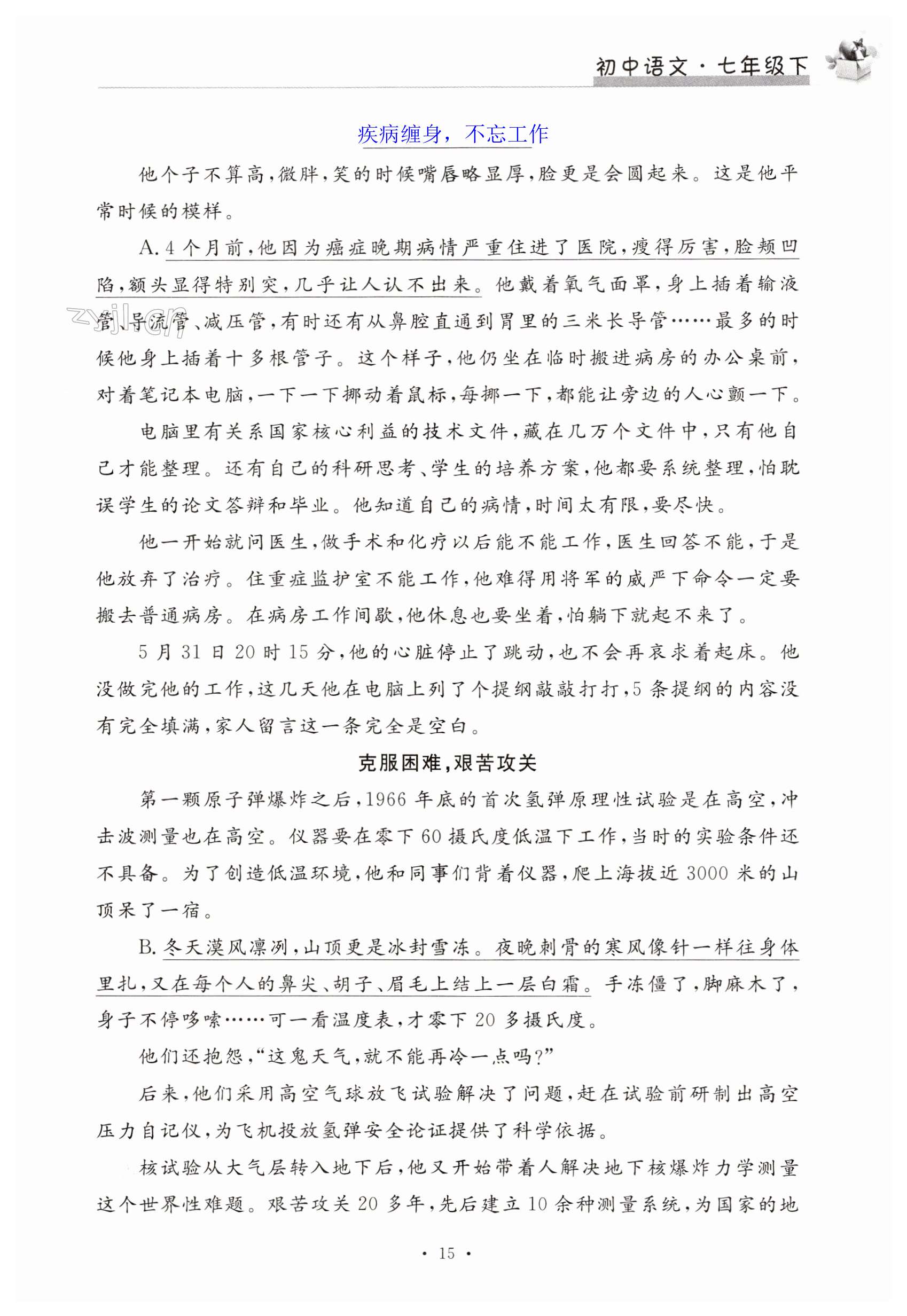 注:目前有些书本章节名称可能整理的还不是很完善,但都是按照顺序排列的,请同学们按照顺序仔细查找。练习册 2023年新编课时精练七年级语文下册人教版 答案主要是用来给同学们做完题方便对答案用的,请勿直接抄袭。