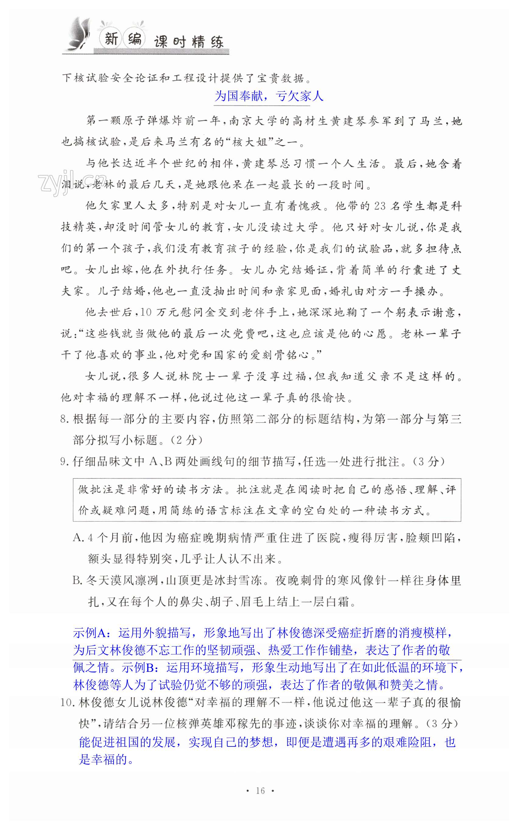 注:目前有些书本章节名称可能整理的还不是很完善,但都是按照顺序排列的,请同学们按照顺序仔细查找。练习册 2023年新编课时精练七年级语文下册人教版 答案主要是用来给同学们做完题方便对答案用的,请勿直接抄袭。