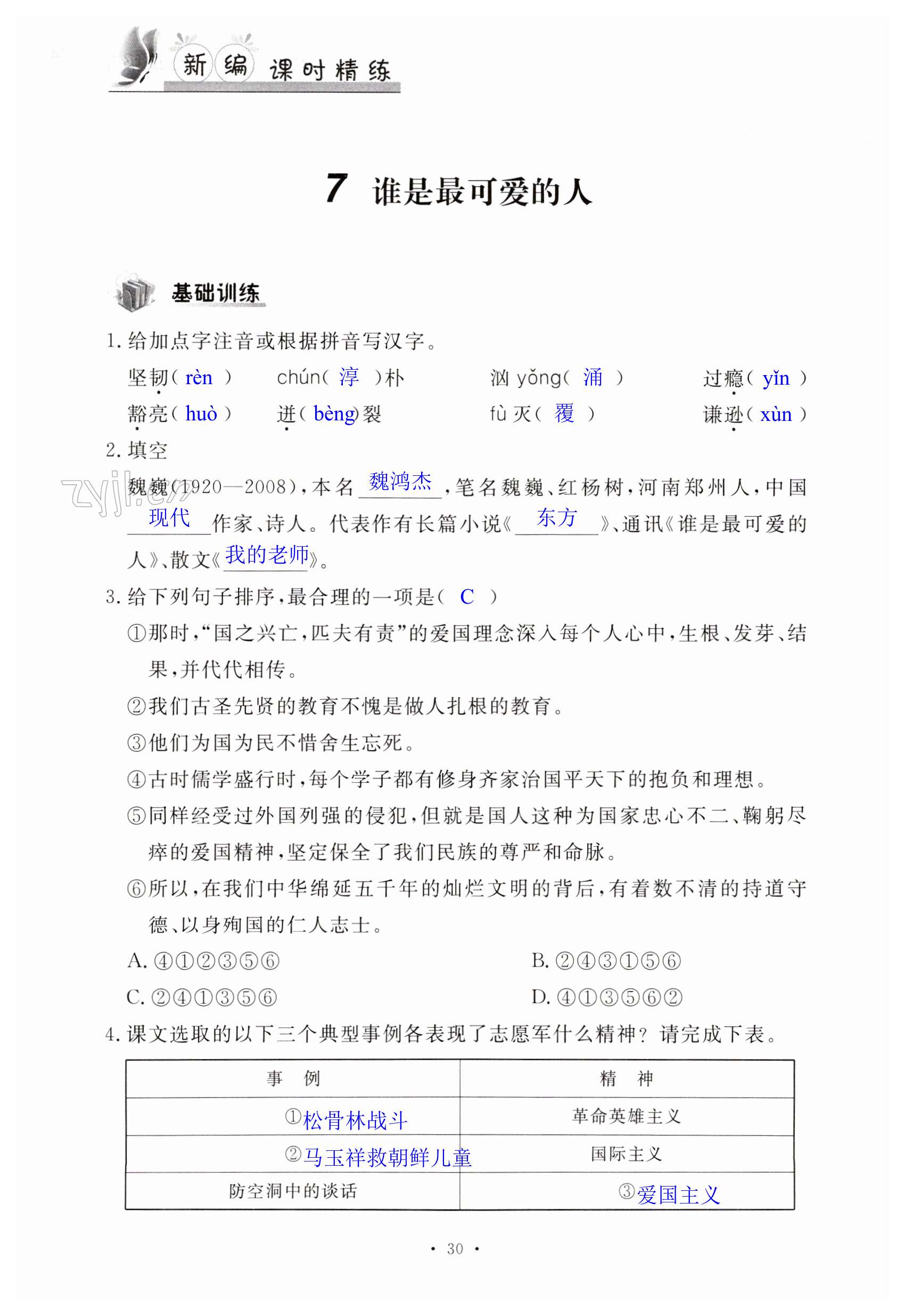 注:目前有些书本章节名称可能整理的还不是很完善,但都是按照顺序排列的,请同学们按照顺序仔细查找。练习册 2023年新编课时精练七年级语文下册人教版 答案主要是用来给同学们做完题方便对答案用的,请勿直接抄袭。
