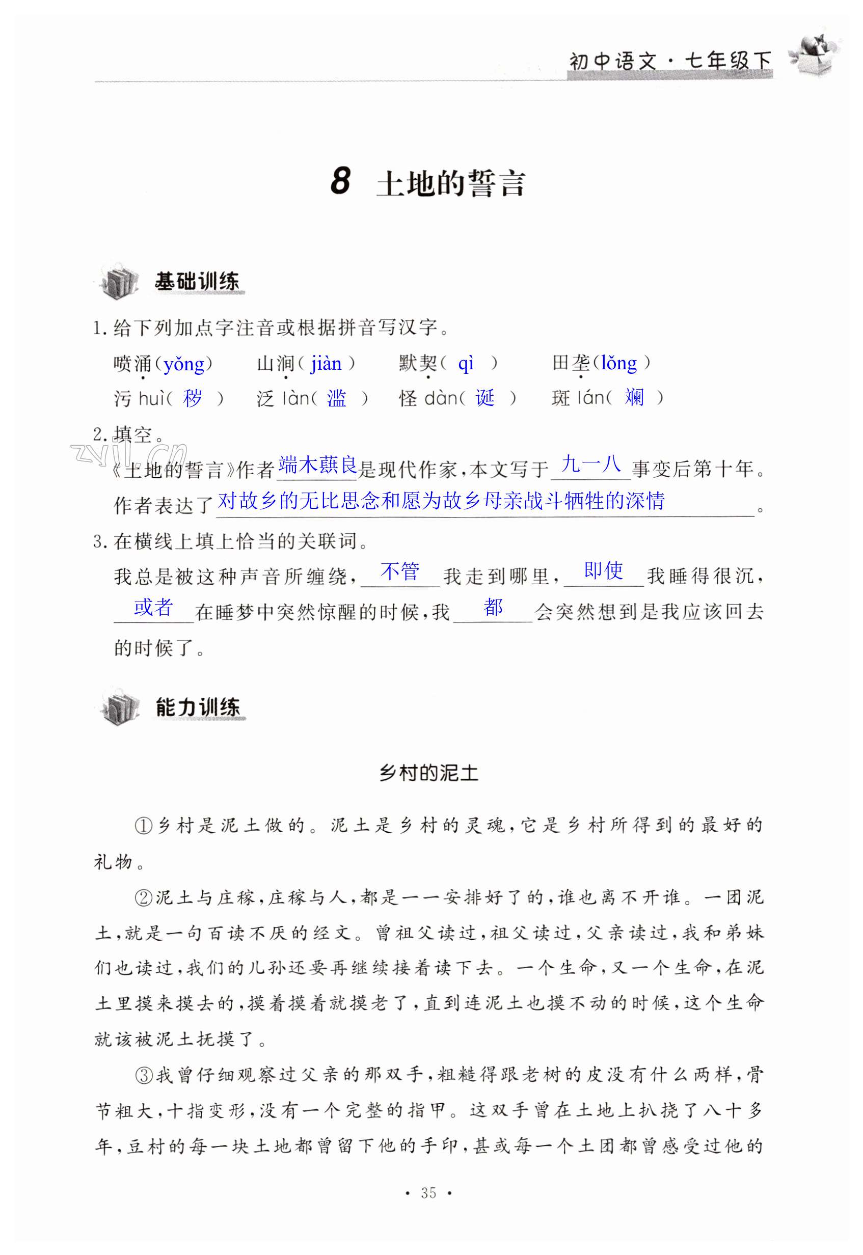 注:目前有些书本章节名称可能整理的还不是很完善,但都是按照顺序排列的,请同学们按照顺序仔细查找。练习册 2023年新编课时精练七年级语文下册人教版 答案主要是用来给同学们做完题方便对答案用的,请勿直接抄袭。
