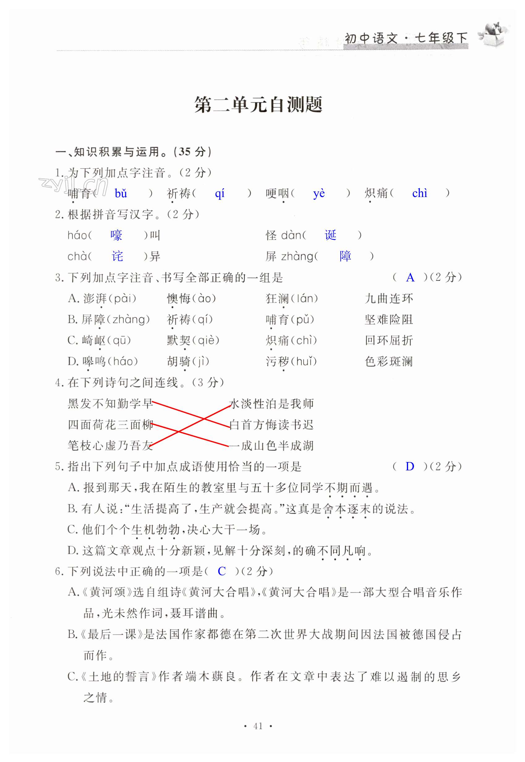 注:目前有些书本章节名称可能整理的还不是很完善,但都是按照顺序排列的,请同学们按照顺序仔细查找。练习册 2023年新编课时精练七年级语文下册人教版 答案主要是用来给同学们做完题方便对答案用的,请勿直接抄袭。