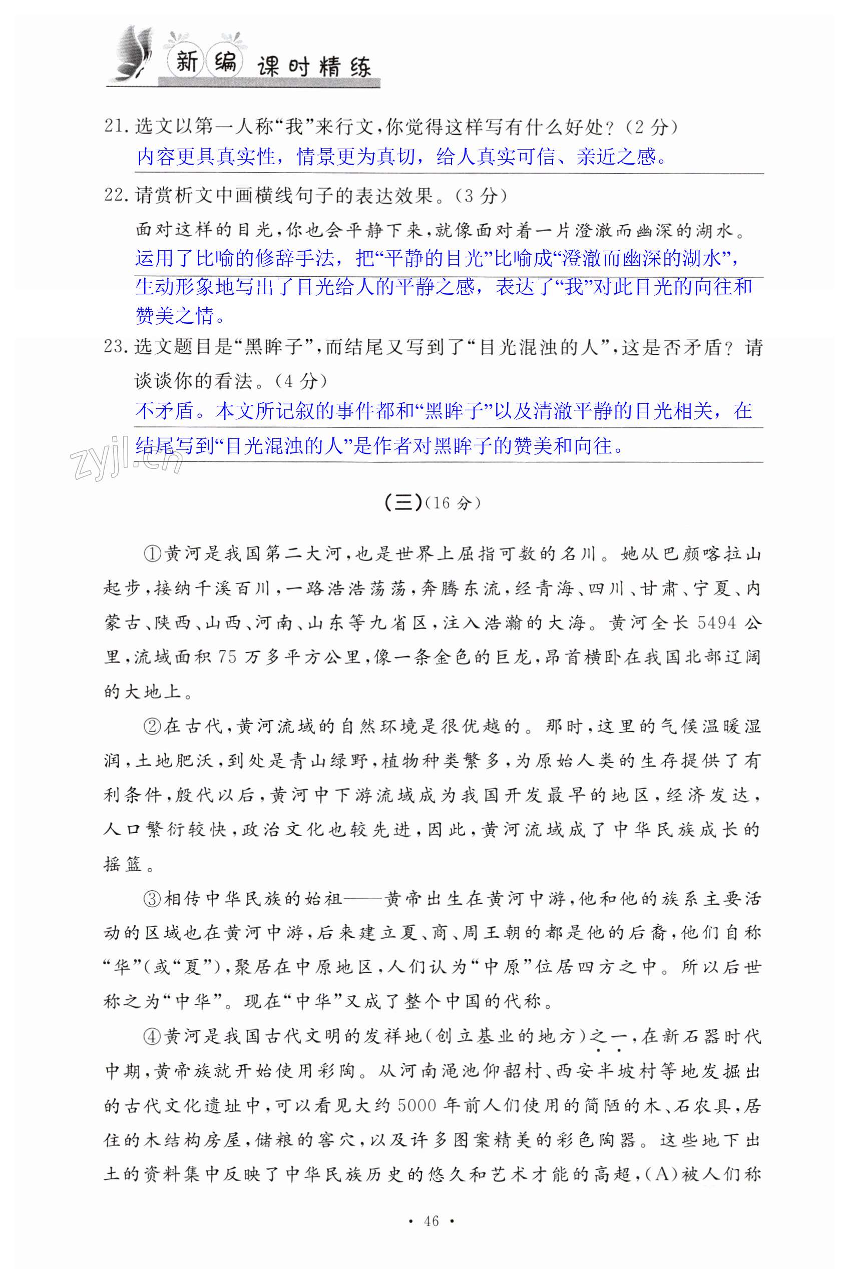 注:目前有些书本章节名称可能整理的还不是很完善,但都是按照顺序排列的,请同学们按照顺序仔细查找。练习册 2023年新编课时精练七年级语文下册人教版 答案主要是用来给同学们做完题方便对答案用的,请勿直接抄袭。
