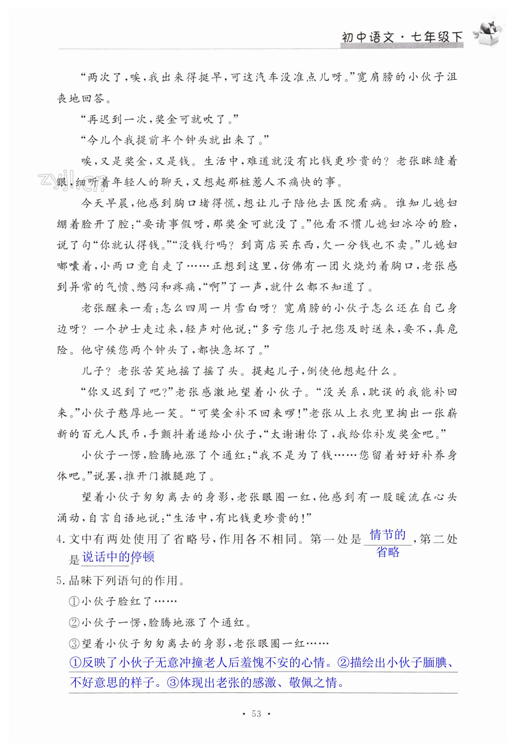注:目前有些书本章节名称可能整理的还不是很完善,但都是按照顺序排列的,请同学们按照顺序仔细查找。练习册 2023年新编课时精练七年级语文下册人教版 答案主要是用来给同学们做完题方便对答案用的,请勿直接抄袭。