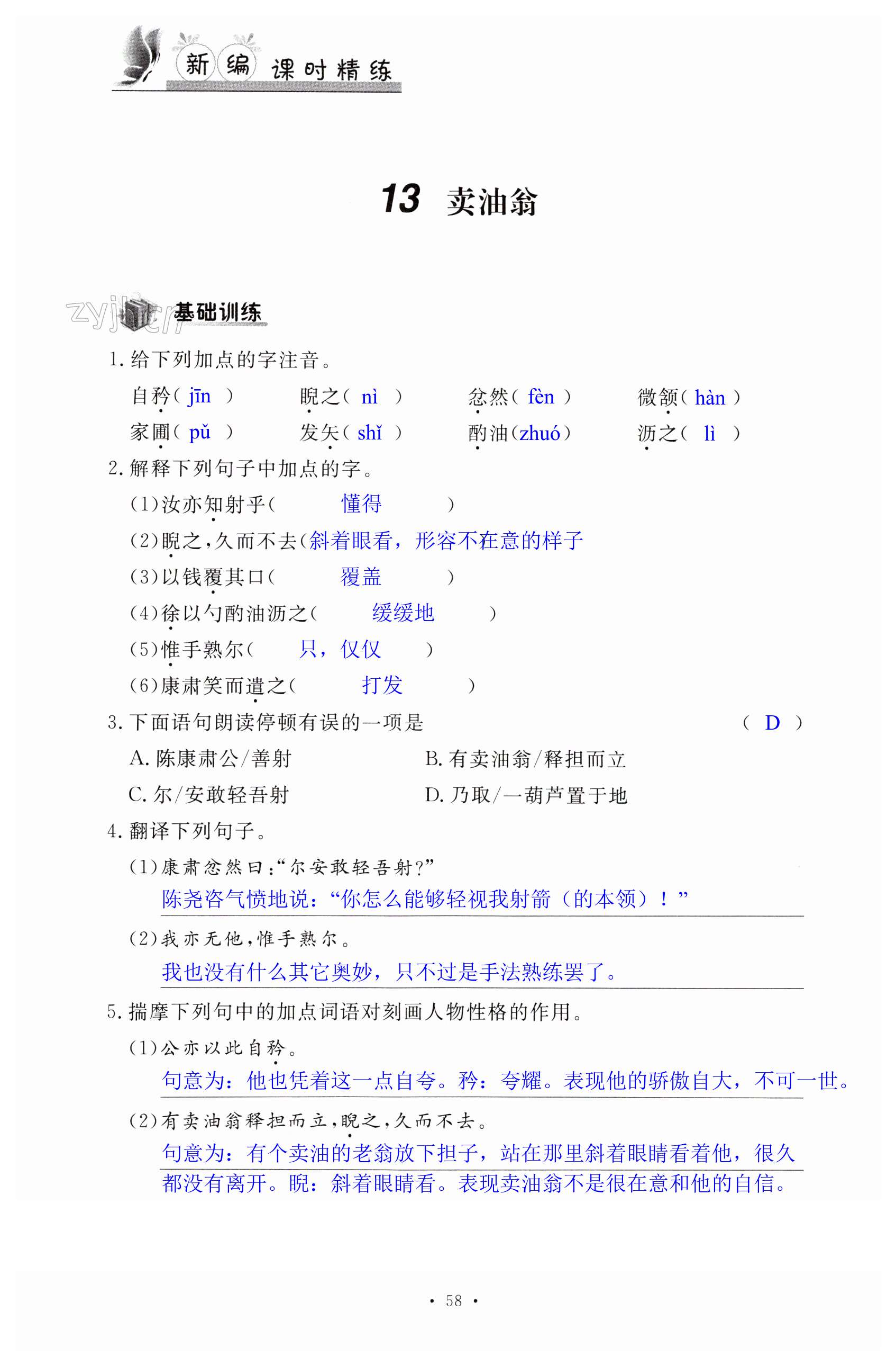 注:目前有些书本章节名称可能整理的还不是很完善,但都是按照顺序排列的,请同学们按照顺序仔细查找。练习册 2023年新编课时精练七年级语文下册人教版 答案主要是用来给同学们做完题方便对答案用的,请勿直接抄袭。