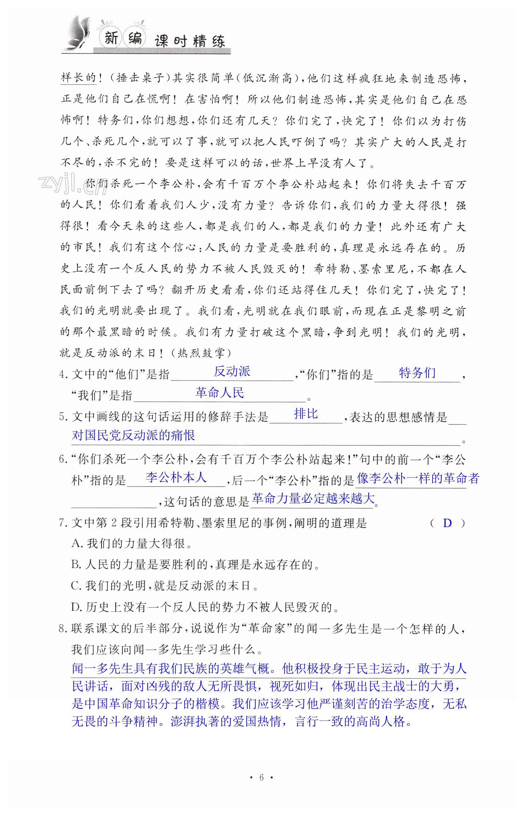 注:目前有些书本章节名称可能整理的还不是很完善,但都是按照顺序排列的,请同学们按照顺序仔细查找。练习册 2023年新编课时精练七年级语文下册人教版 答案主要是用来给同学们做完题方便对答案用的,请勿直接抄袭。