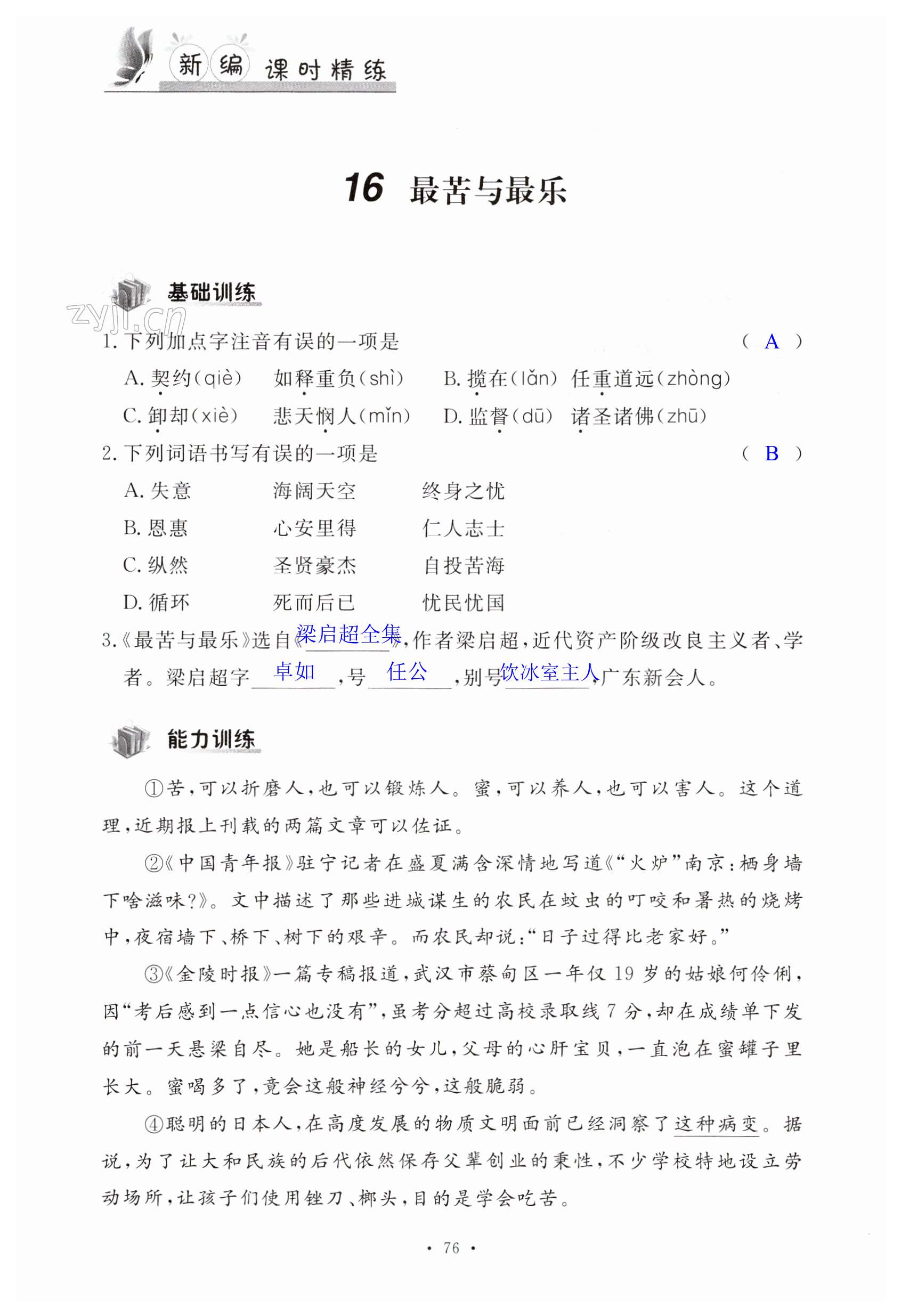 注:目前有些书本章节名称可能整理的还不是很完善,但都是按照顺序排列的,请同学们按照顺序仔细查找。练习册 2023年新编课时精练七年级语文下册人教版 答案主要是用来给同学们做完题方便对答案用的,请勿直接抄袭。