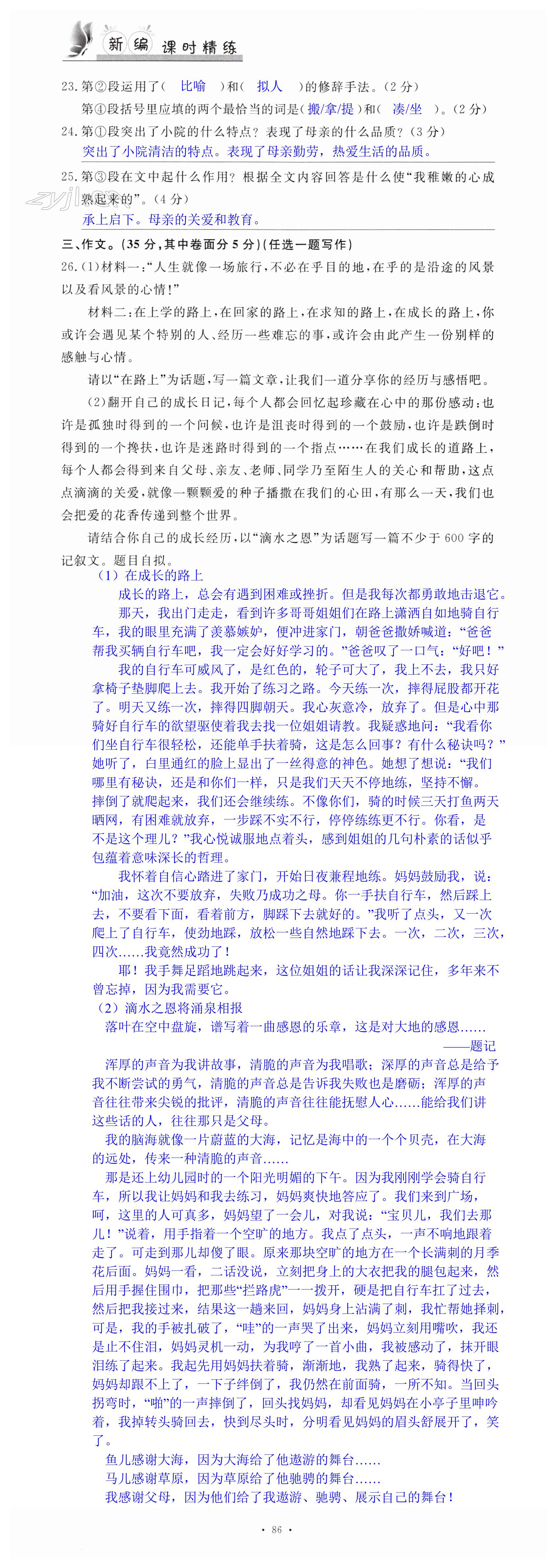 注:目前有些书本章节名称可能整理的还不是很完善,但都是按照顺序排列的,请同学们按照顺序仔细查找。练习册 2023年新编课时精练七年级语文下册人教版 答案主要是用来给同学们做完题方便对答案用的,请勿直接抄袭。