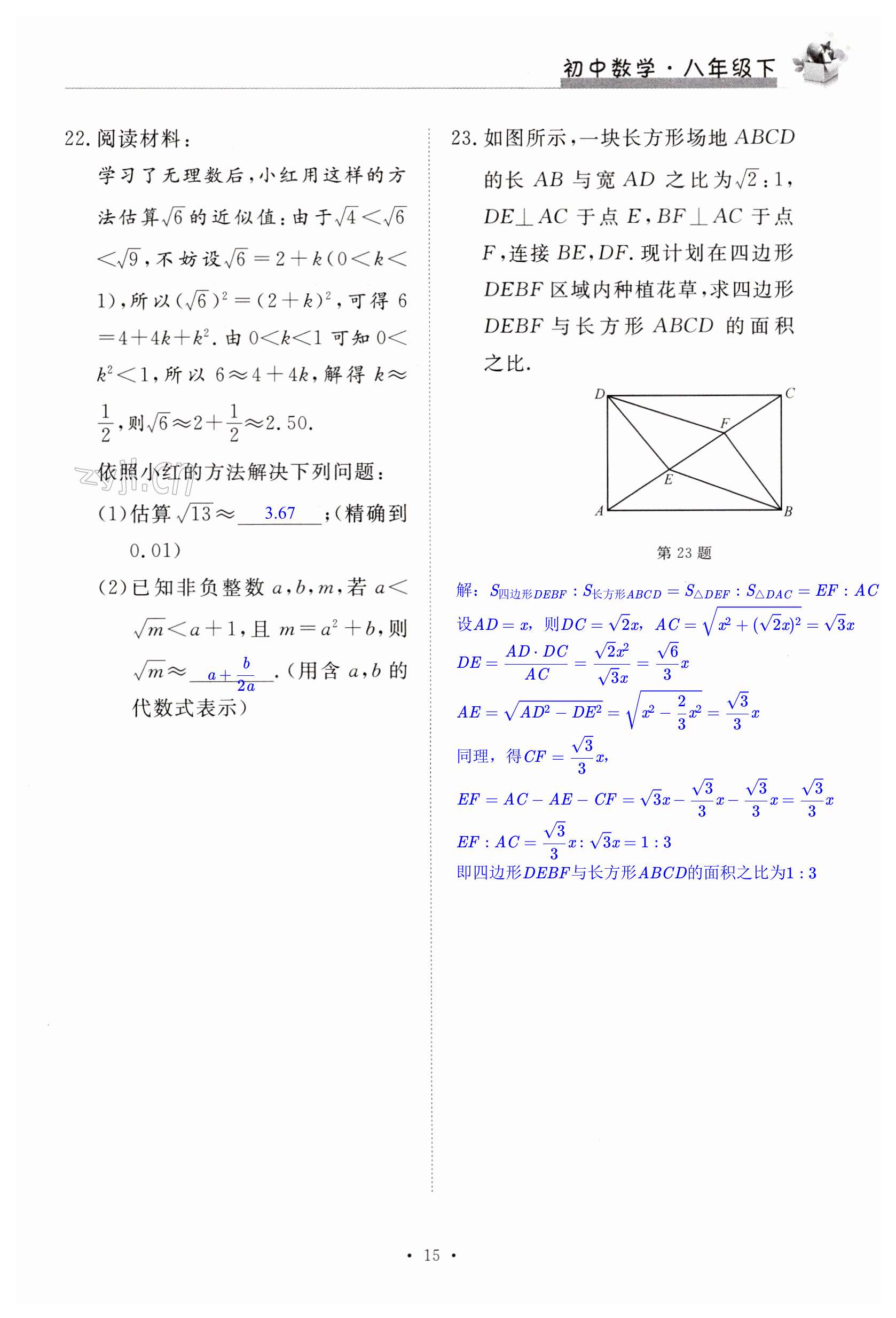 注:目前有些书本章节名称可能整理的还不是很完善,但都是按照顺序排列的,请同学们按照顺序仔细查找。练习册 2023年新编课时精练八年级数学下册浙教版 答案主要是用来给同学们做完题方便对答案用的,请勿直接抄袭。