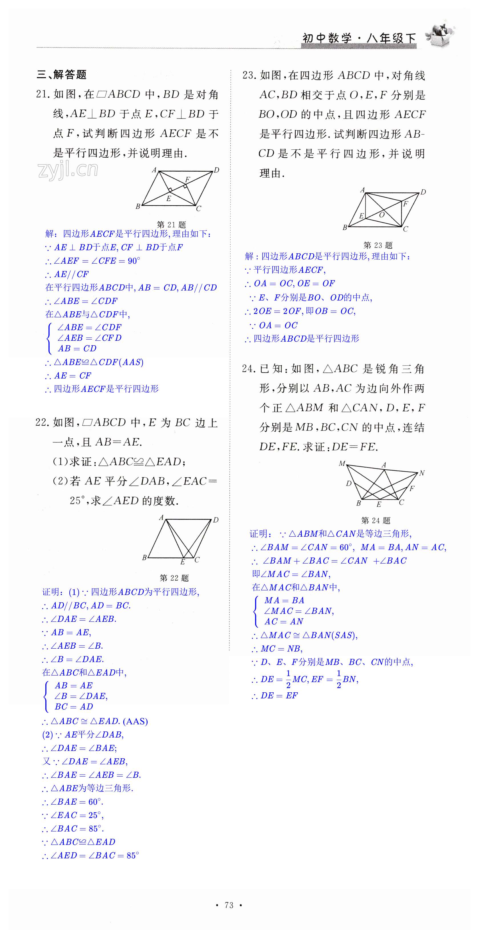 注:目前有些书本章节名称可能整理的还不是很完善,但都是按照顺序排列的,请同学们按照顺序仔细查找。练习册 2023年新编课时精练八年级数学下册浙教版 答案主要是用来给同学们做完题方便对答案用的,请勿直接抄袭。