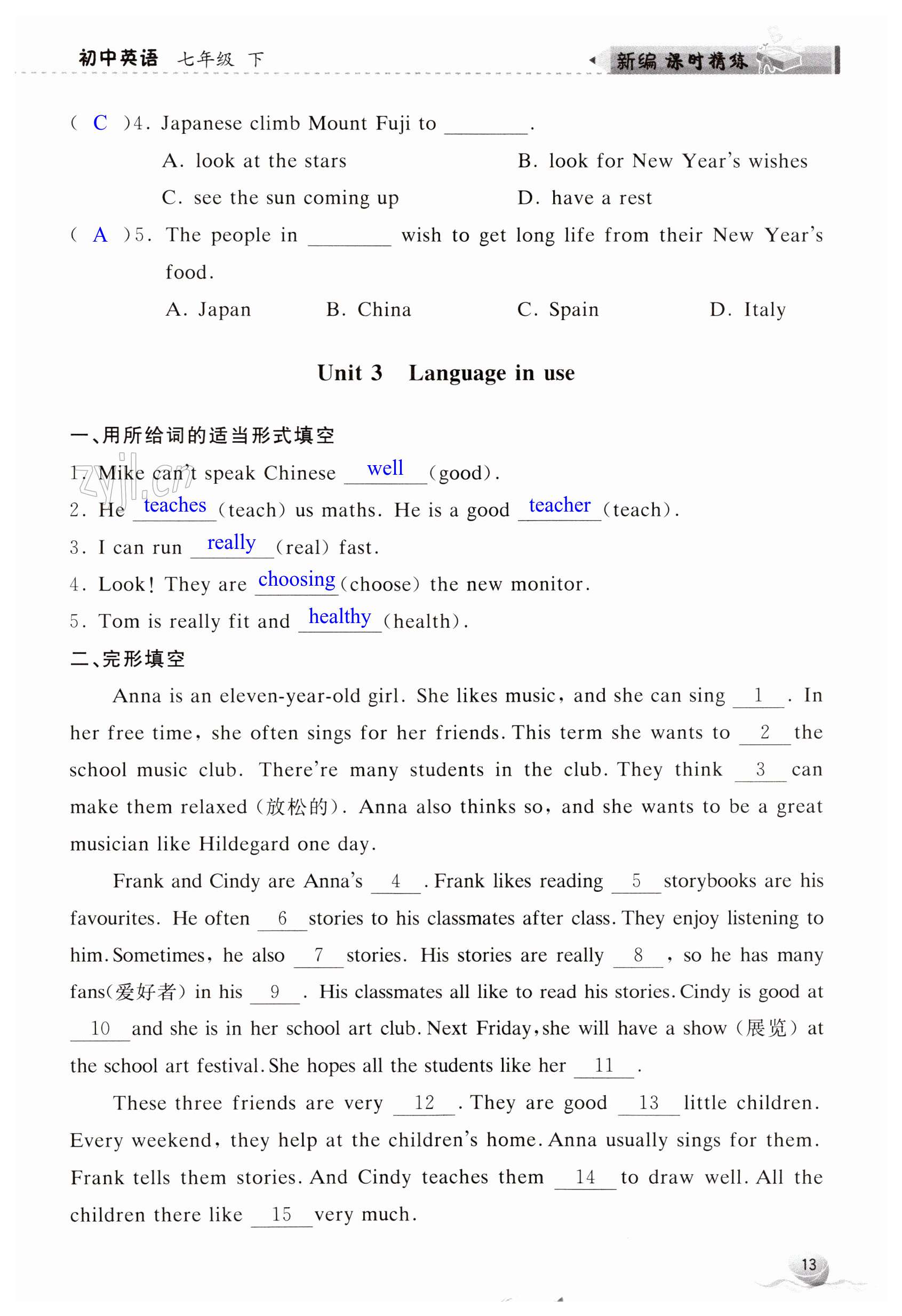 注:目前有些书本章节名称可能整理的还不是很完善,但都是按照顺序排列的,请同学们按照顺序仔细查找。练习册 2023年新编课时精练七年级英语下册外研版 答案主要是用来给同学们做完题方便对答案用的,请勿直接抄袭。