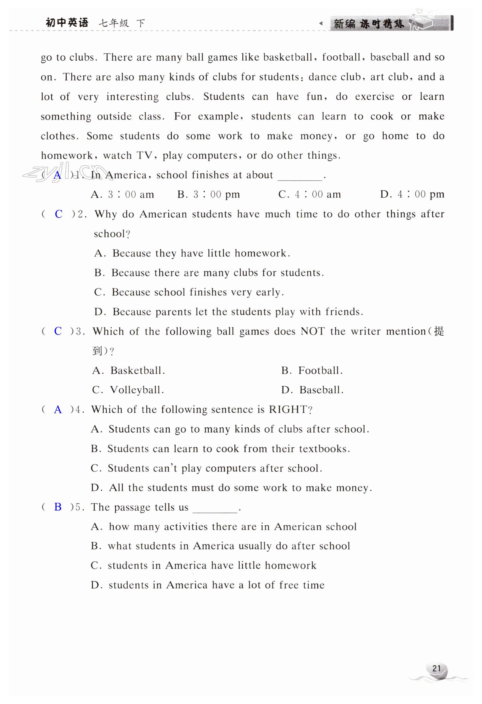 注:目前有些书本章节名称可能整理的还不是很完善,但都是按照顺序排列的,请同学们按照顺序仔细查找。练习册 2023年新编课时精练七年级英语下册外研版 答案主要是用来给同学们做完题方便对答案用的,请勿直接抄袭。