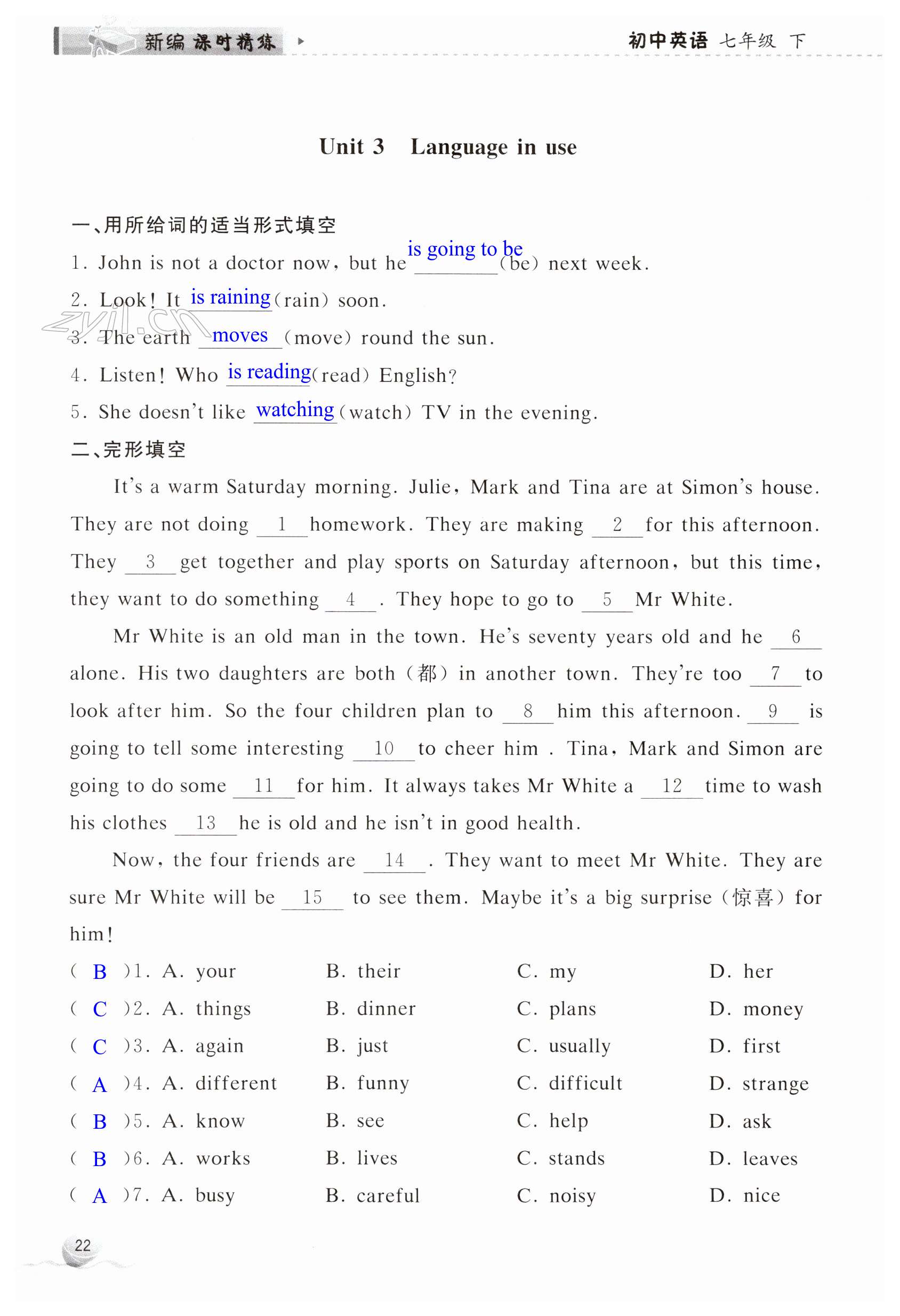 注:目前有些书本章节名称可能整理的还不是很完善,但都是按照顺序排列的,请同学们按照顺序仔细查找。练习册 2023年新编课时精练七年级英语下册外研版 答案主要是用来给同学们做完题方便对答案用的,请勿直接抄袭。